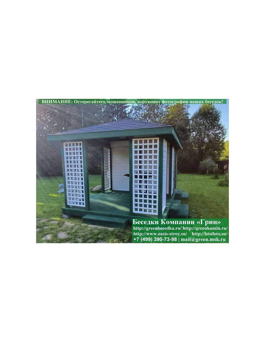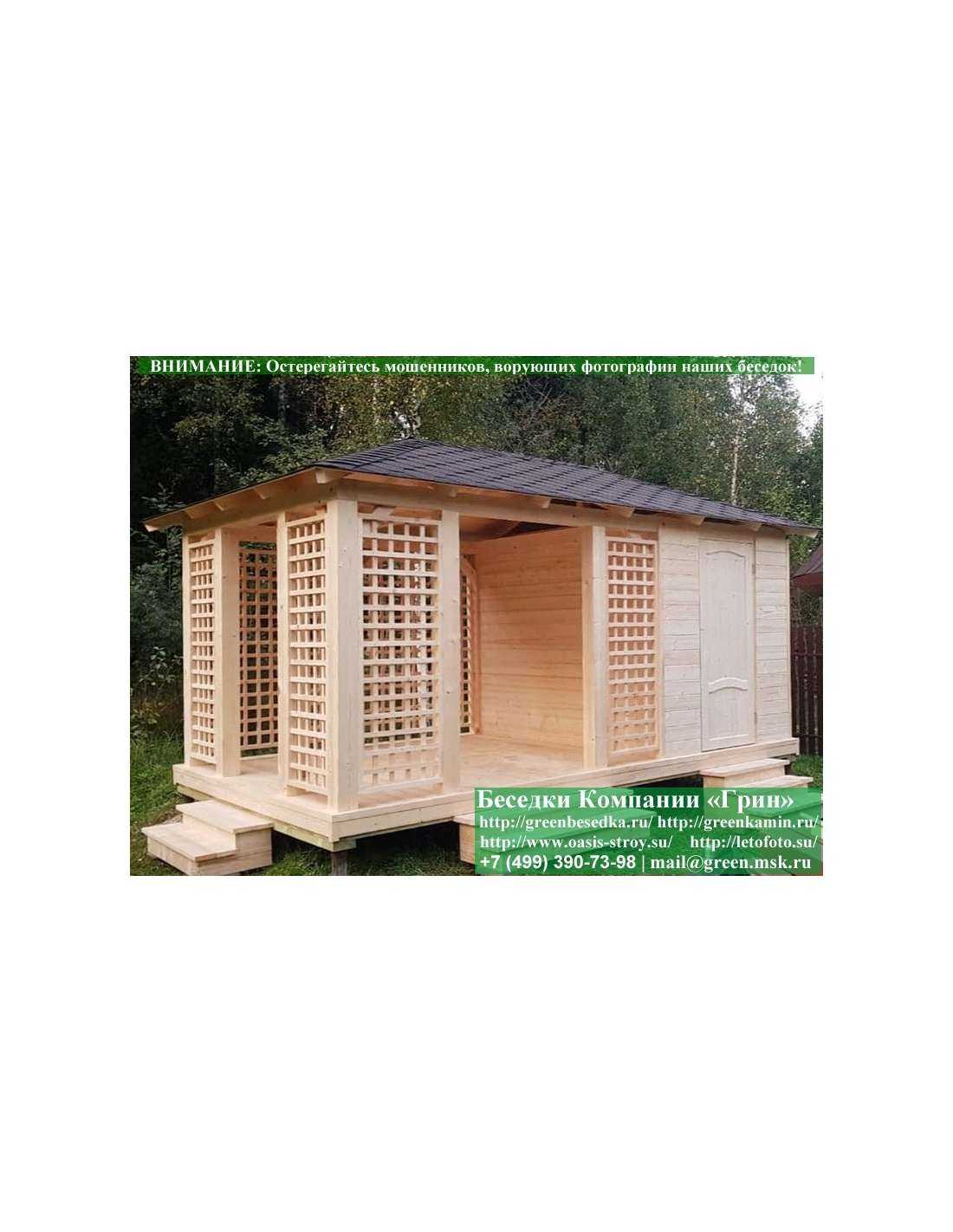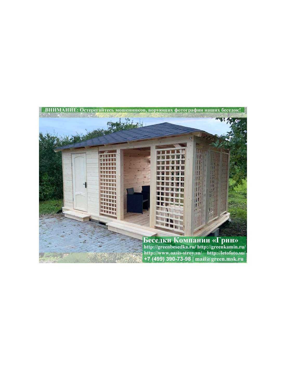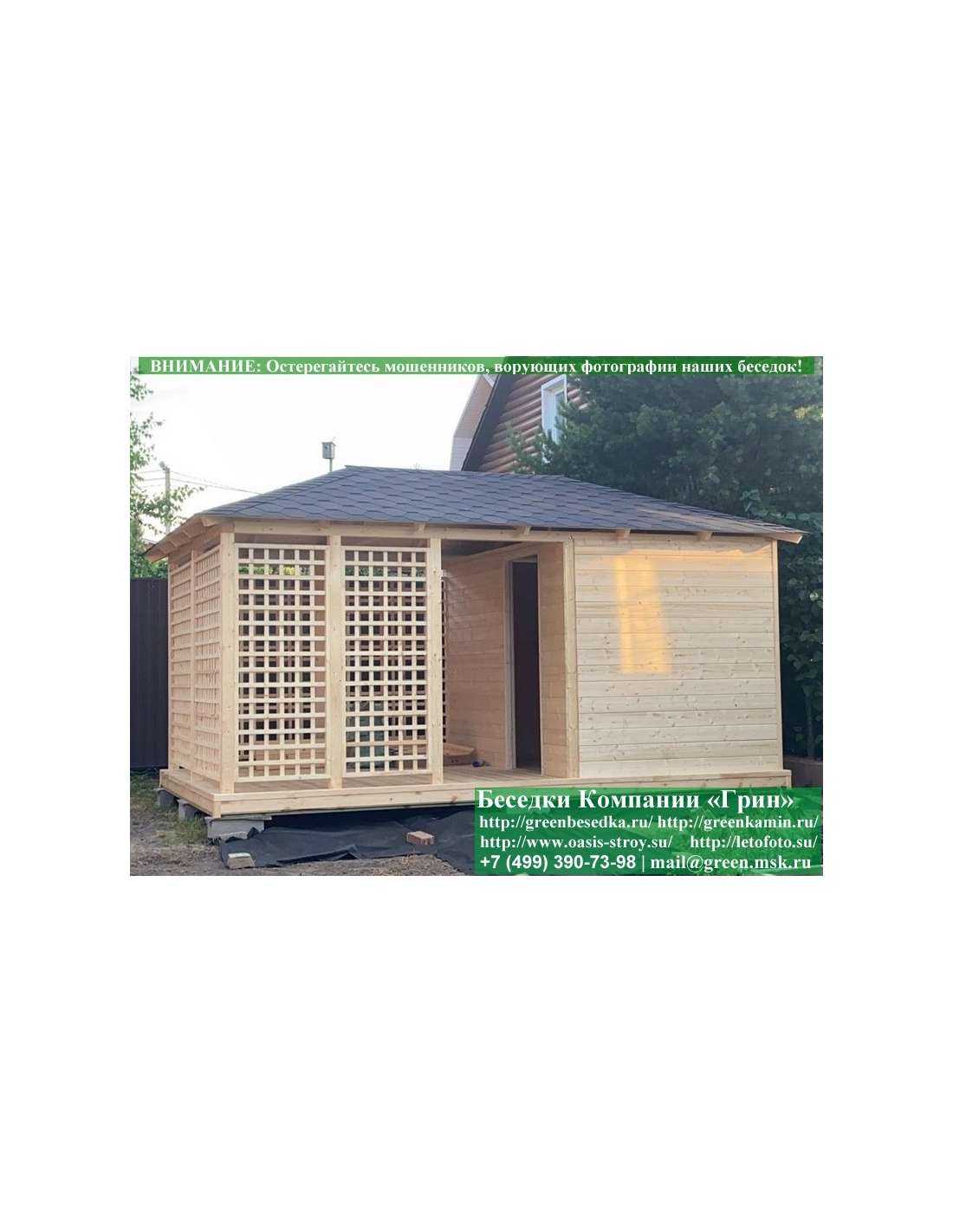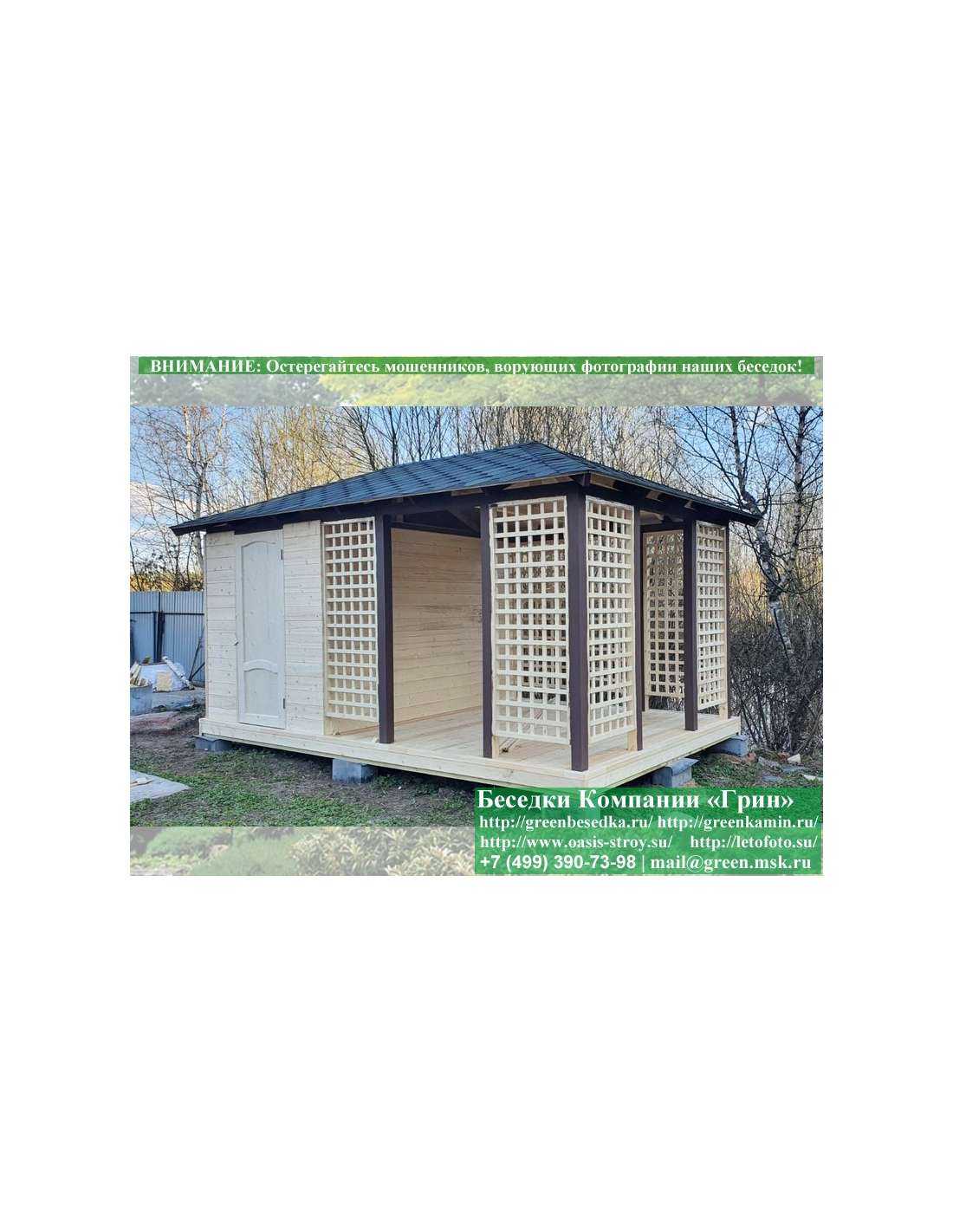 В стандартной поставке беседка с хозблоком идет с проемами под крышей, между беседкой и хозблоком и хозблоком и улицей. Стоимость работ зависит от размеров беседки. Данная цена указана за работу беседки размерами 3х5 метров.