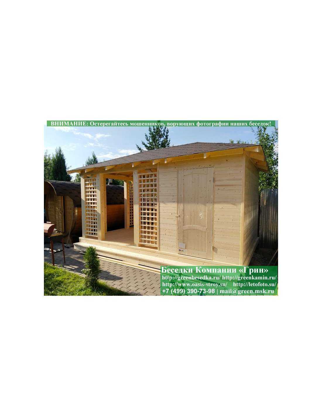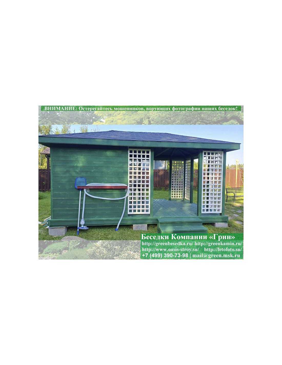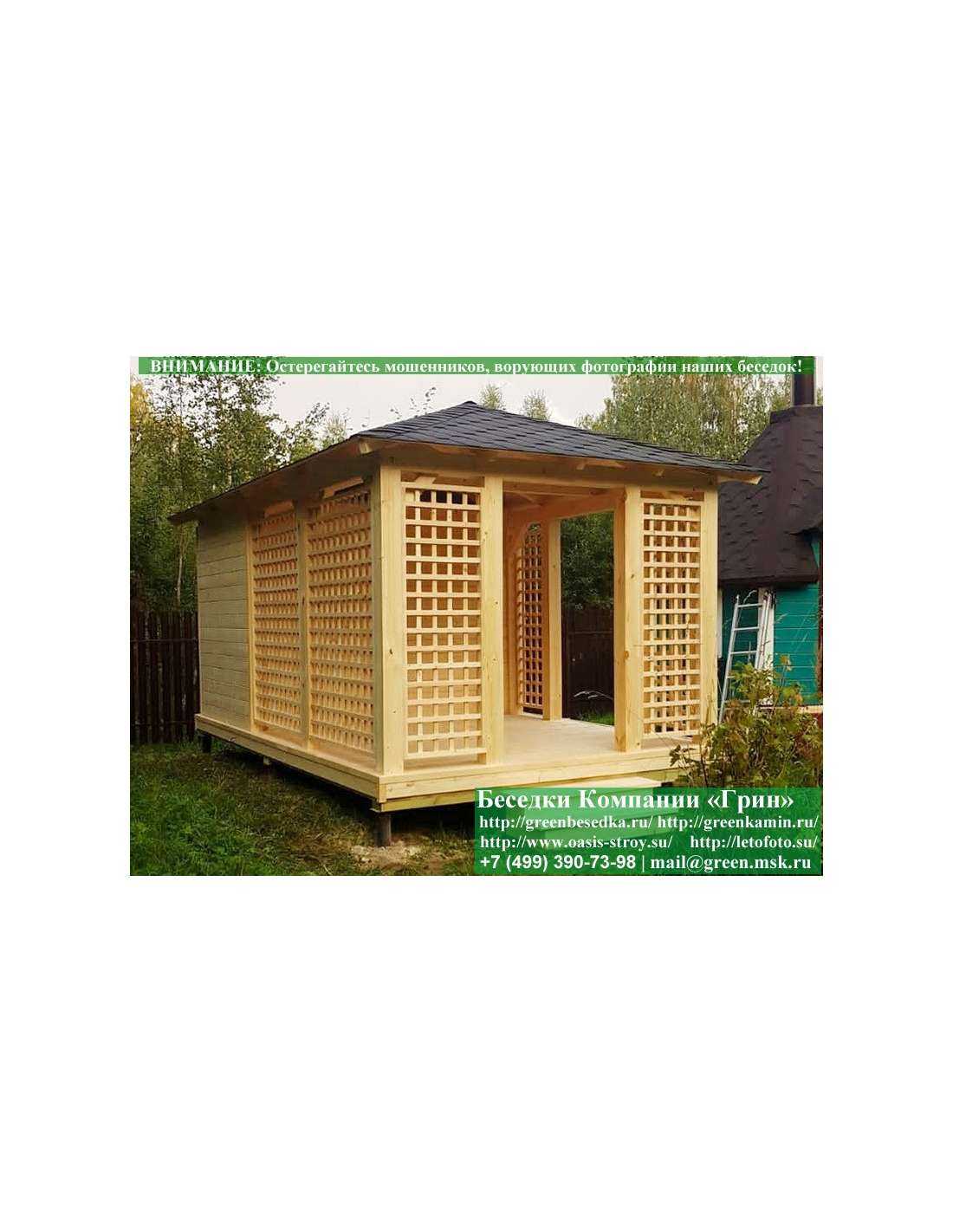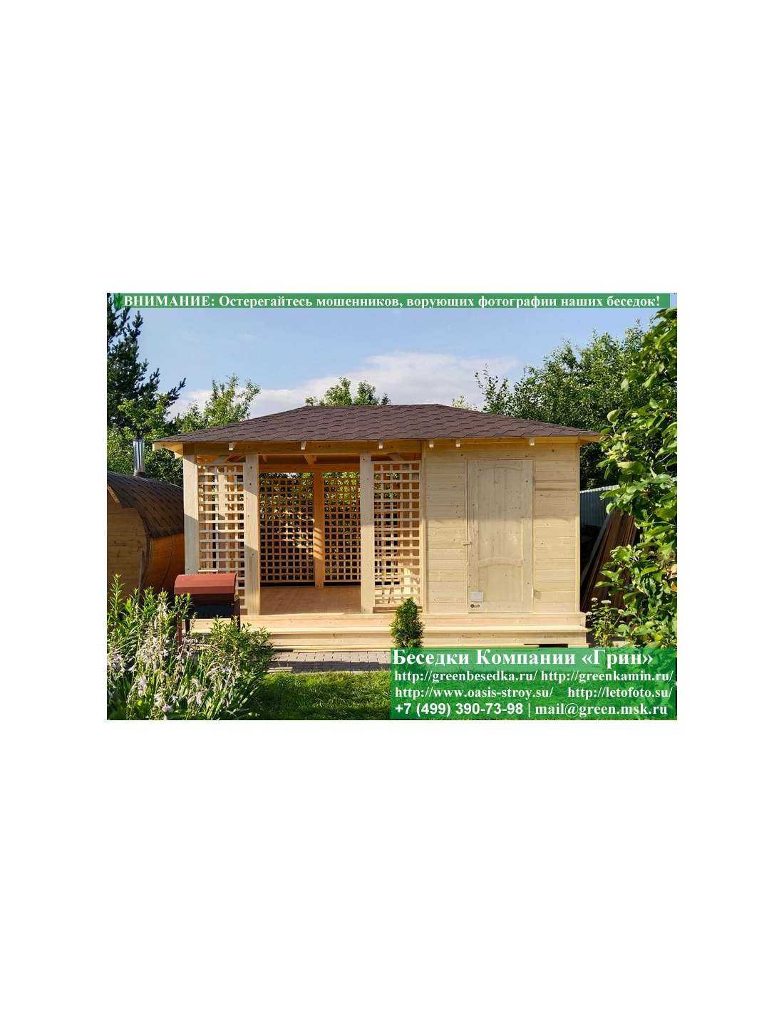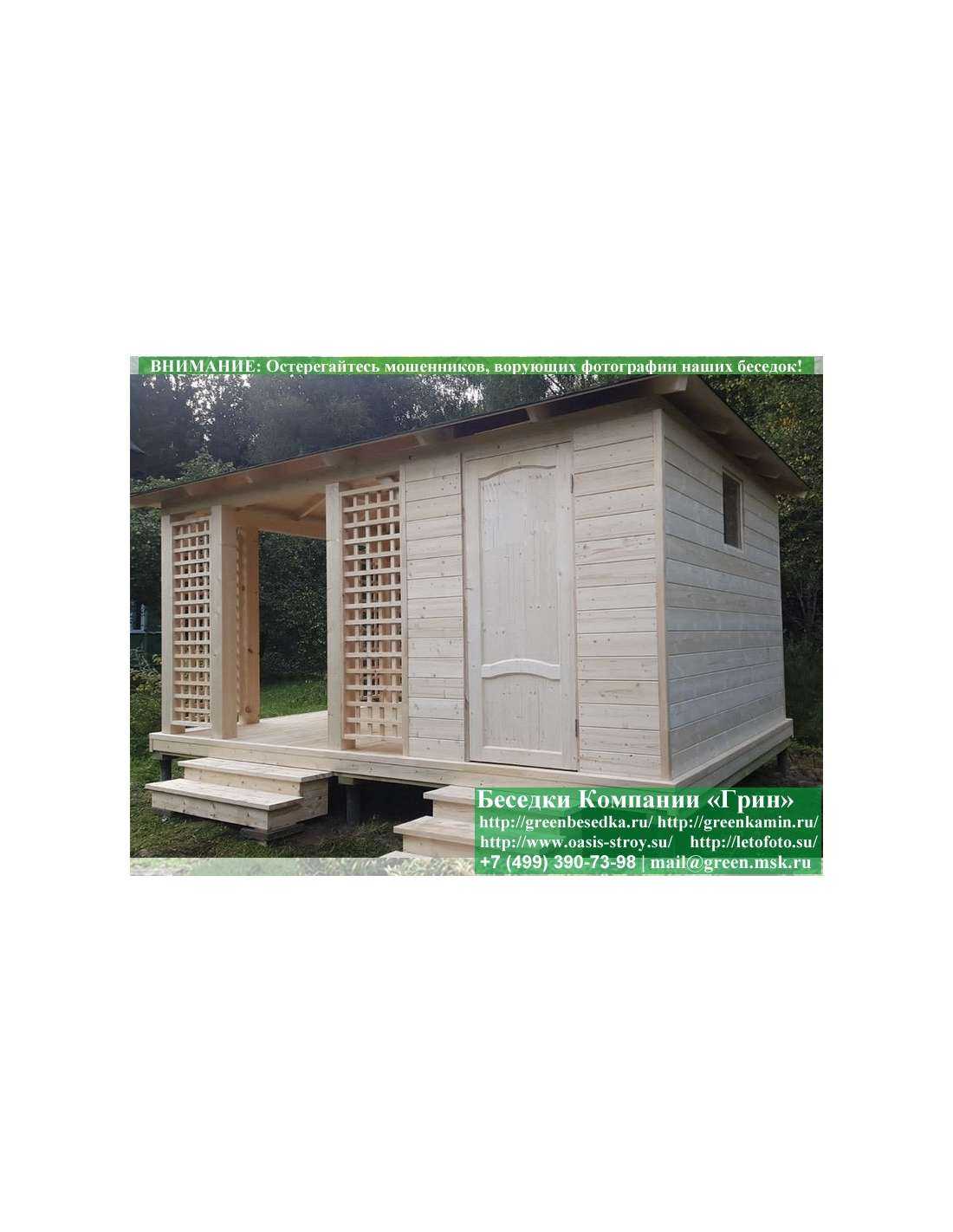 В стандартной поставке беседка с хозблоком идет с проемами под крышей, между беседкой и хозблоком и хозблоком и улицей. Стоимость работ зависит от размеров беседки. Данная цена указана за работу беседки размерами 3х5 метров.