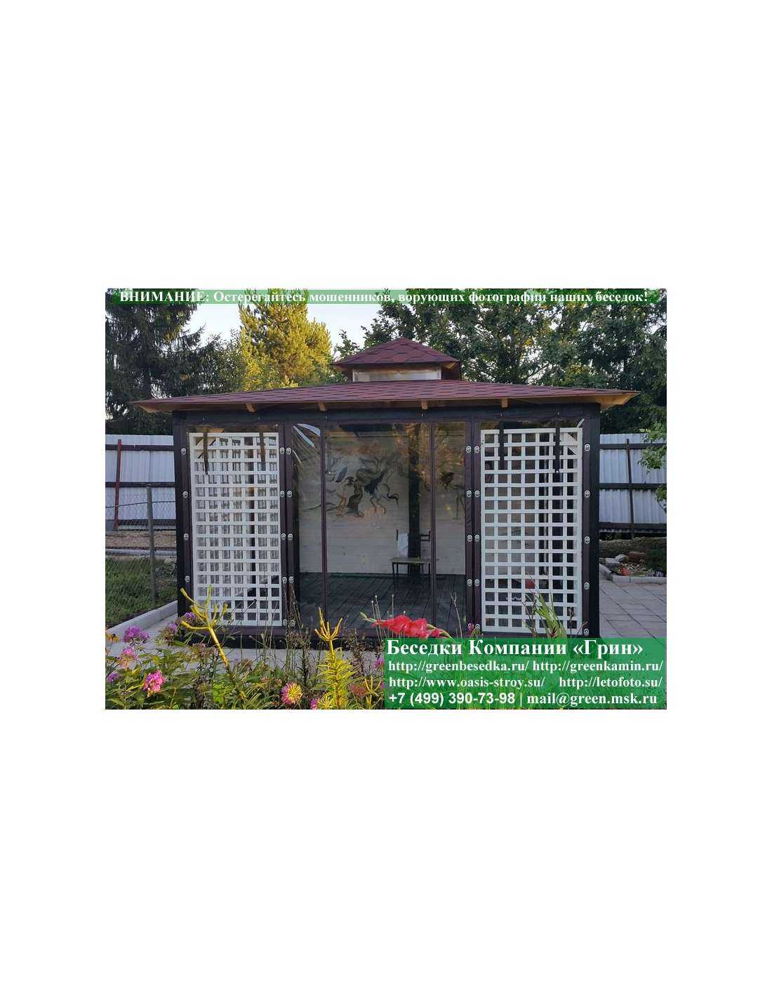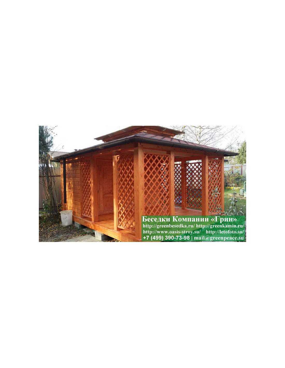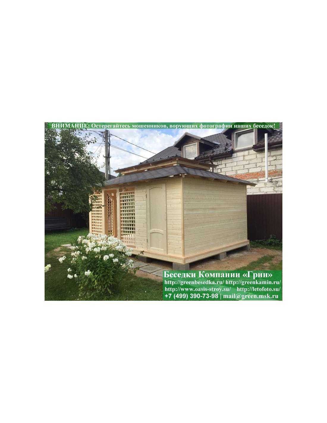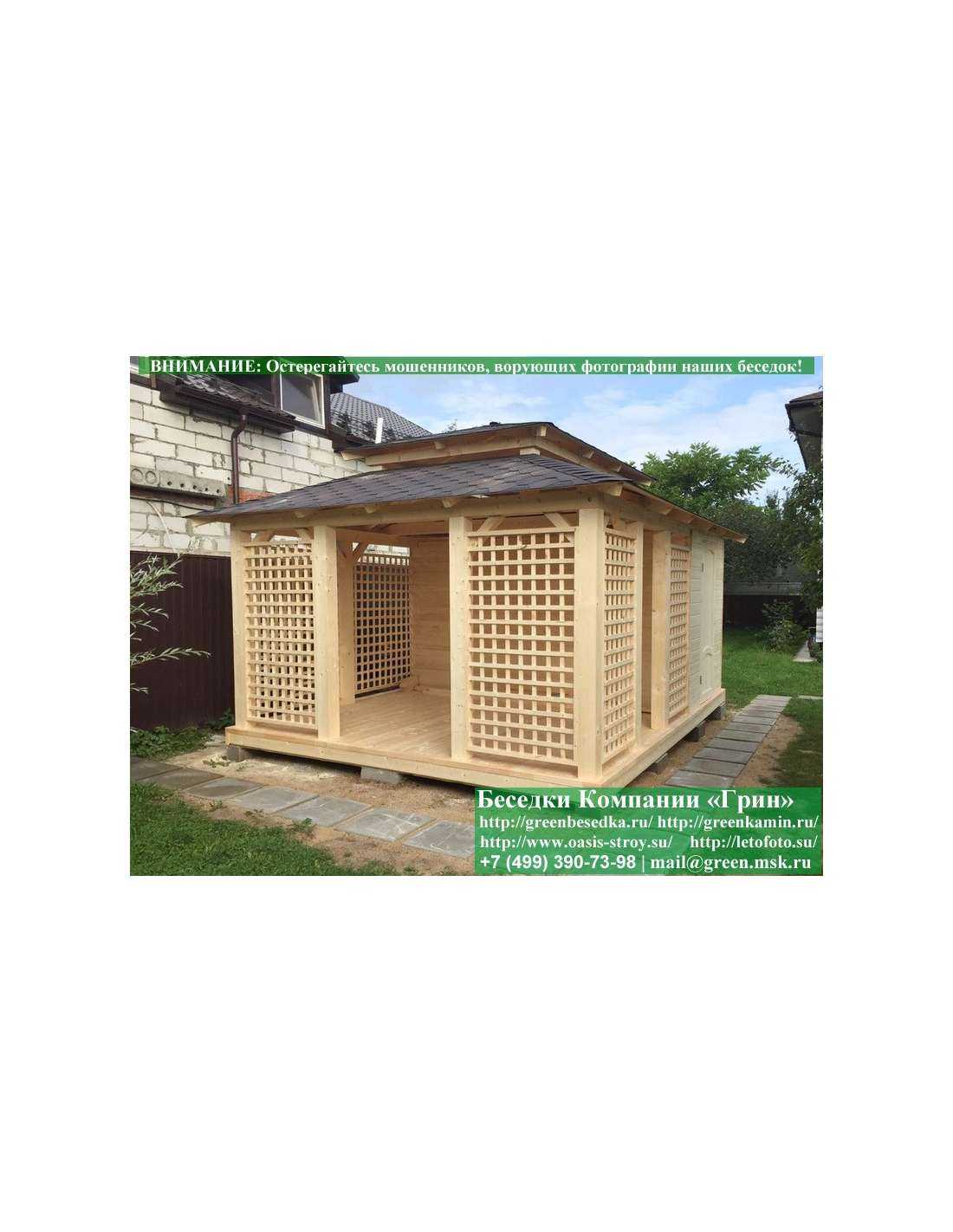 В стандартной поставке беседка с хозблоком идет с проемами под крышей, между беседкой и хозблоком и хозблоком и улицей. Стоимость работ зависит от размеров беседки. Данная цена указана за работу беседки размерами 3х5 метров.