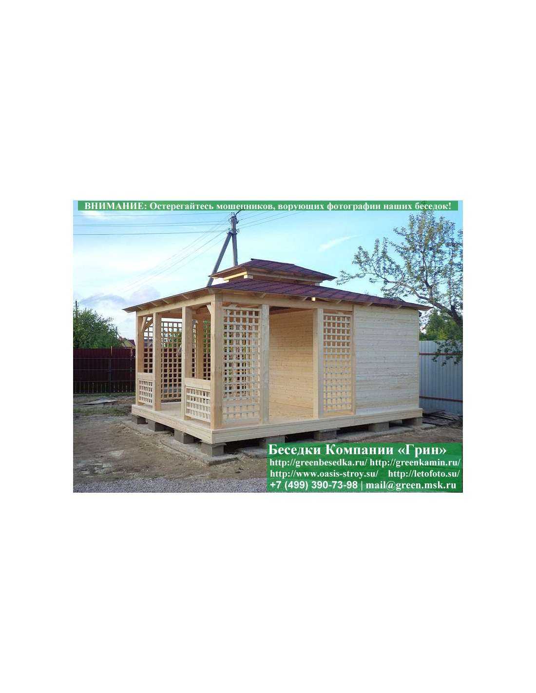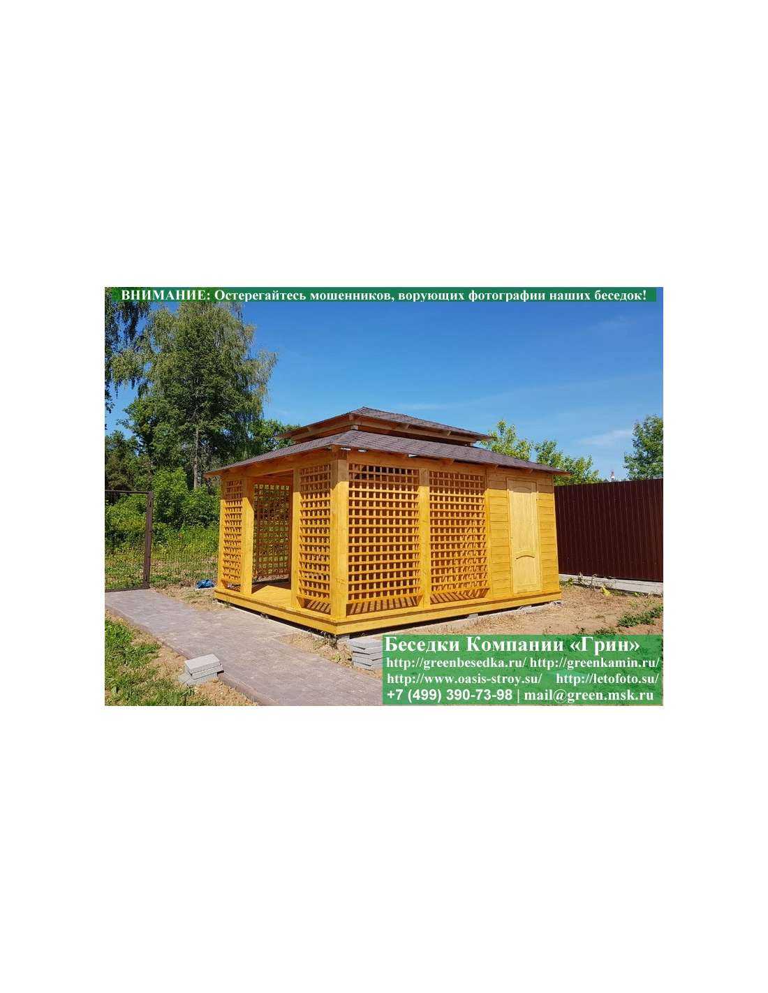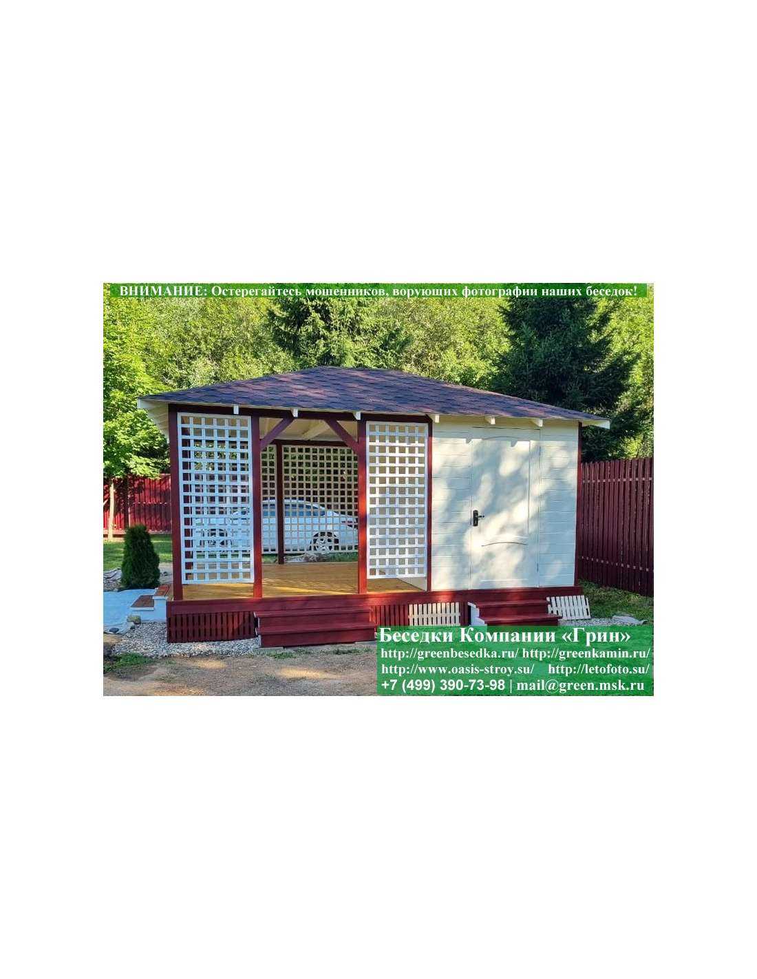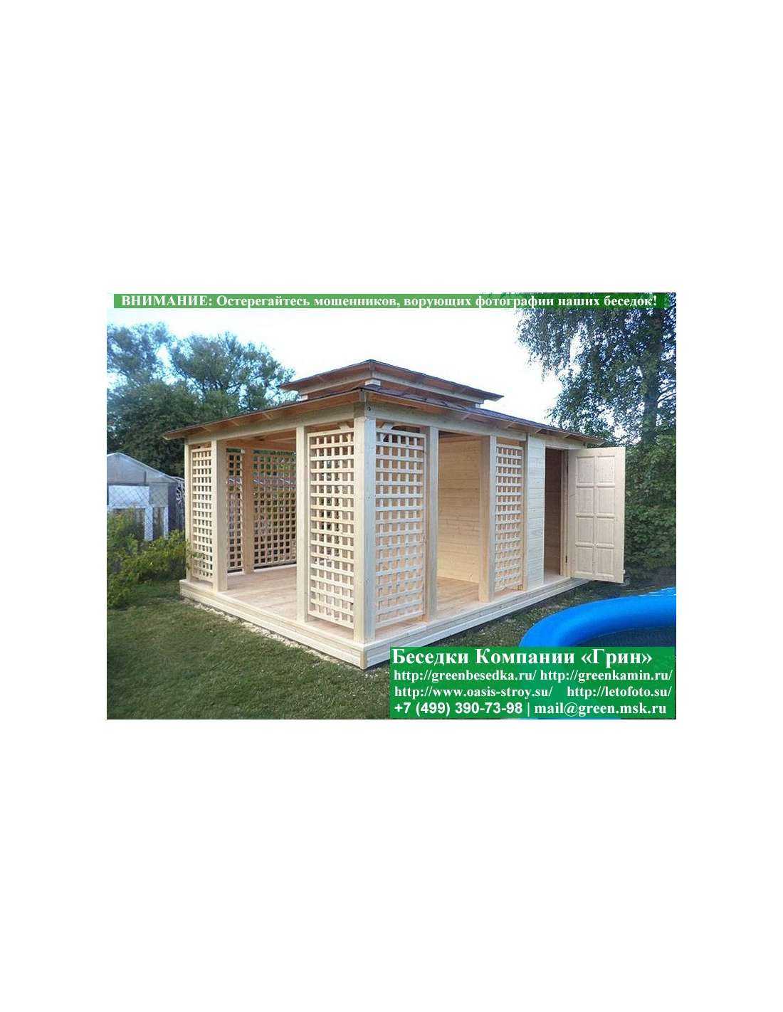 В стандартной поставке беседка с хозблоком идет с проемами под крышей, между беседкой и хозблоком и хозблоком и улицей. Стоимость работ зависит от размеров беседки. Данная цена указана за работу беседки размерами 3х5 метров.