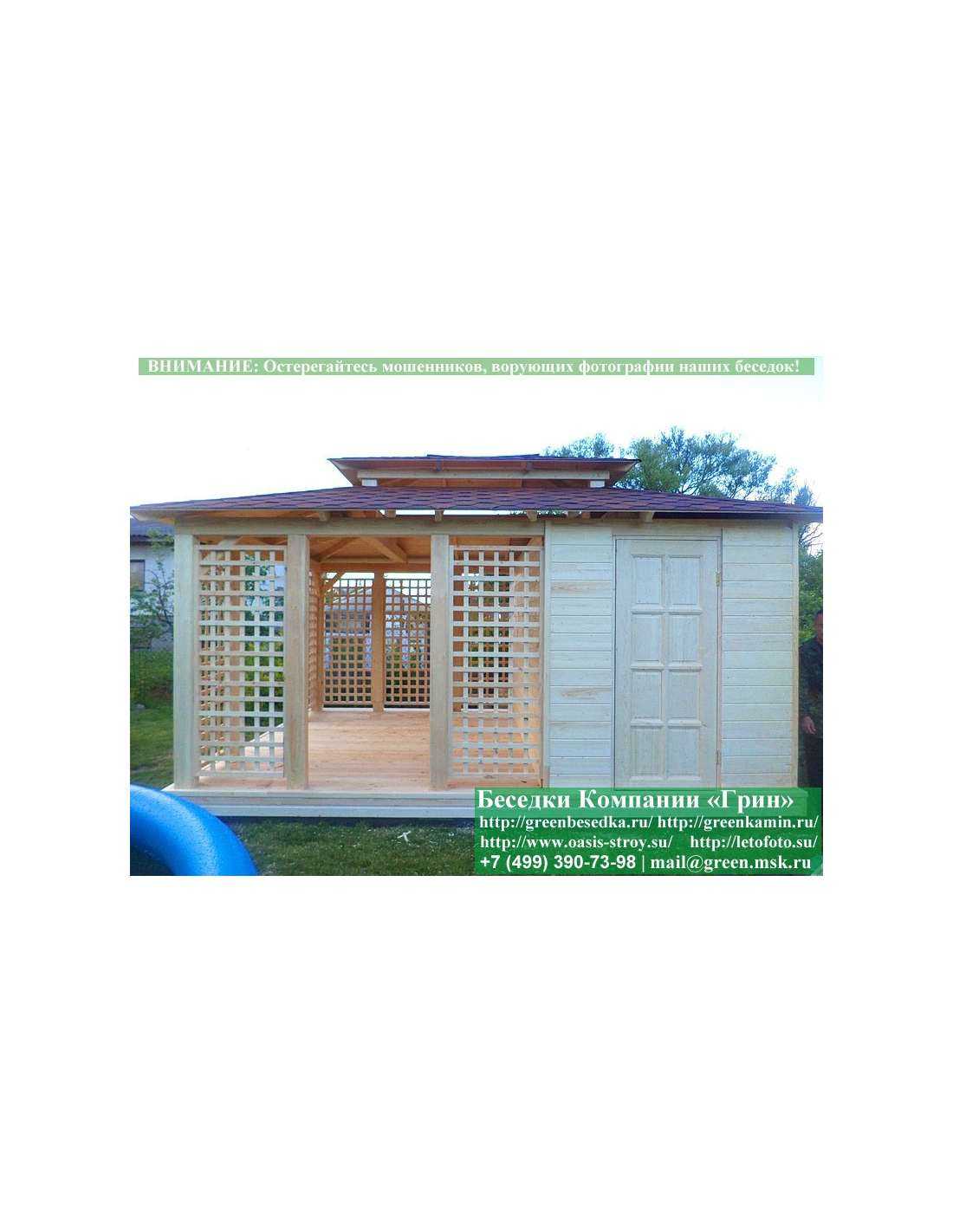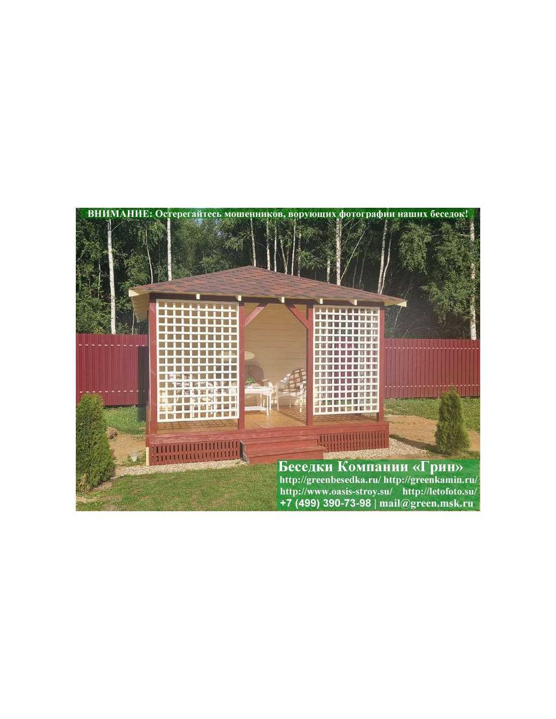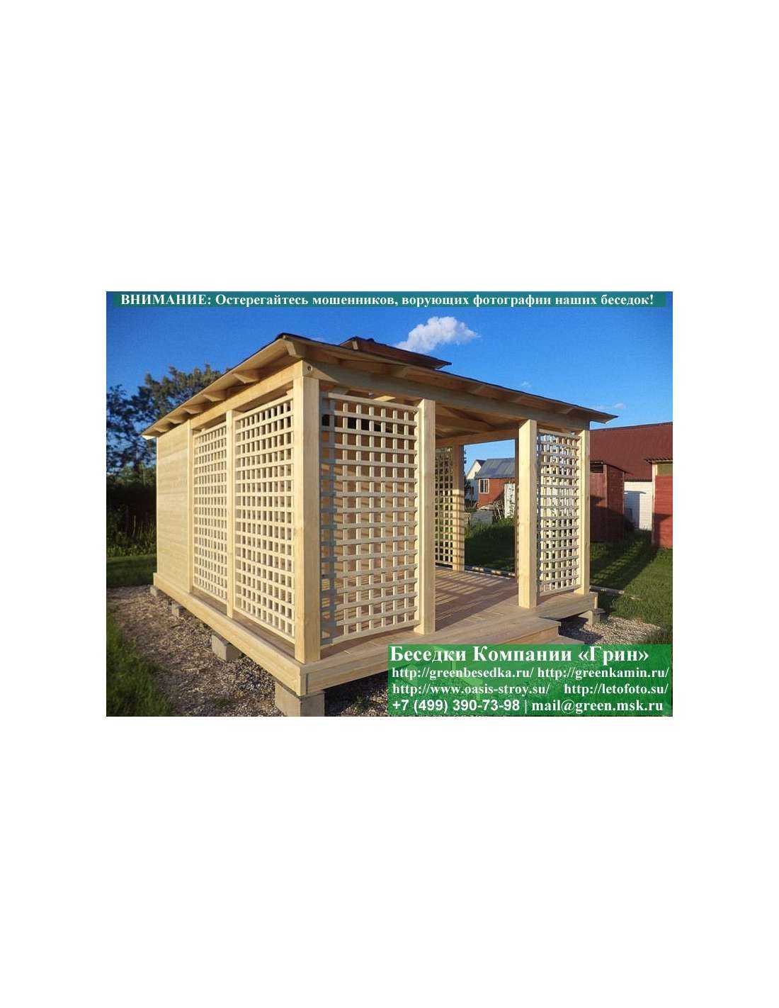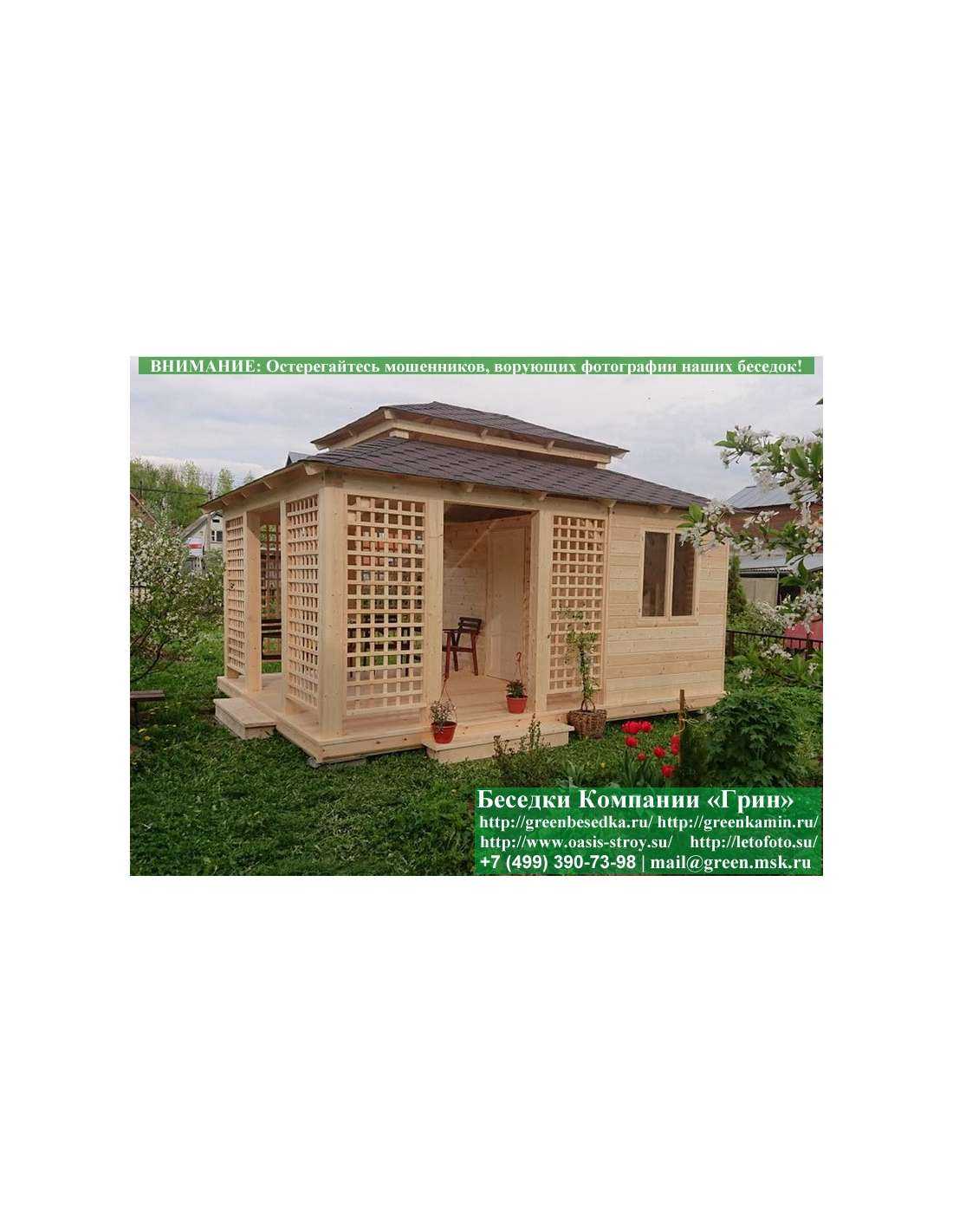 В стандартной поставке беседка с хозблоком идет с проемами под крышей, между беседкой и хозблоком и хозблоком и улицей. Стоимость работ зависит от размеров беседки. Данная цена указана за работу беседки размерами 3х5 метров.