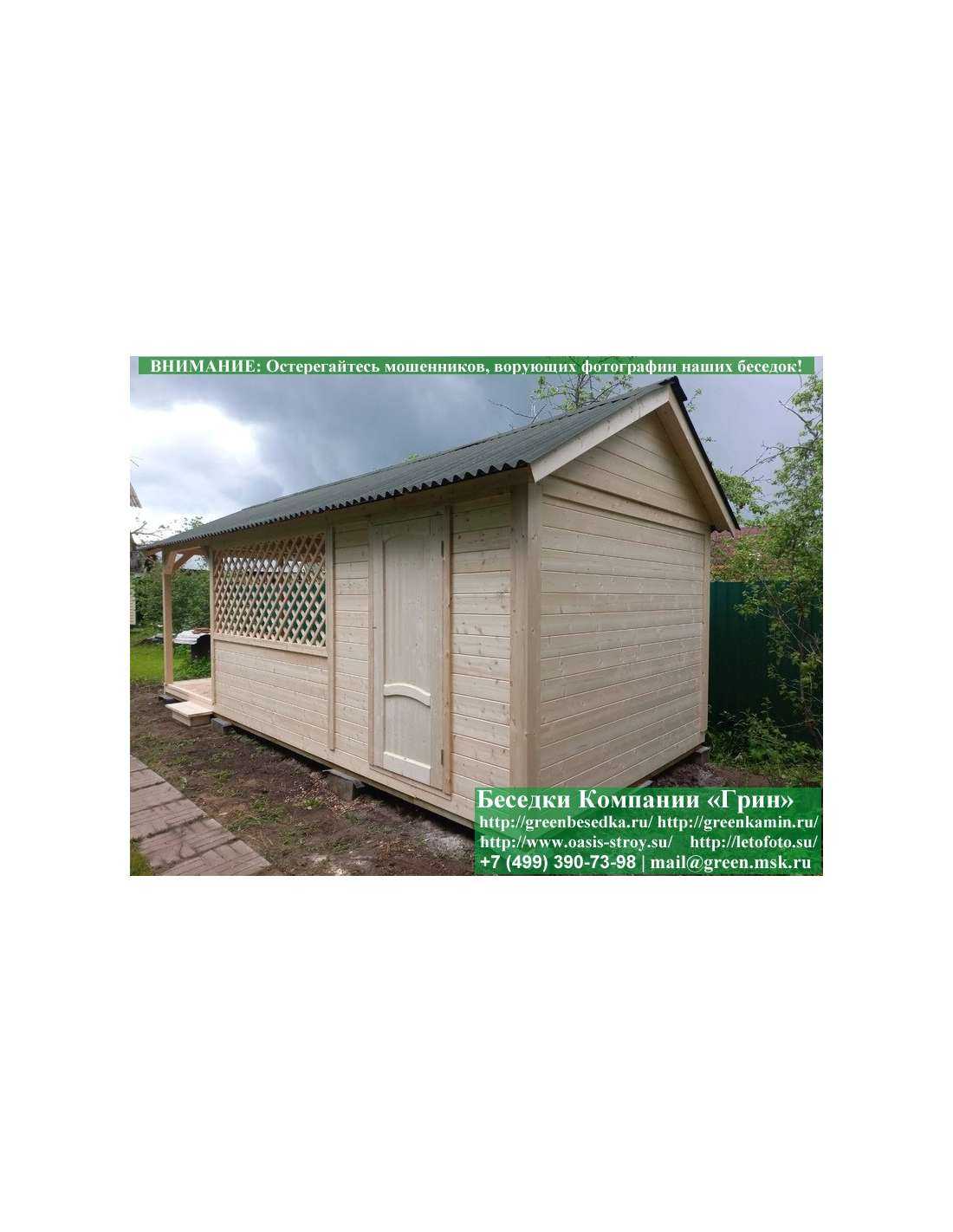 В стандартной поставке в виде кровли на крышу бытовок, беседок, хозблоков 3х6 метров кладется ондулин (мягкий шифер). Вы можете дополнительно заменить его на более надежную металлочерепицу. Цена 31000 руб.