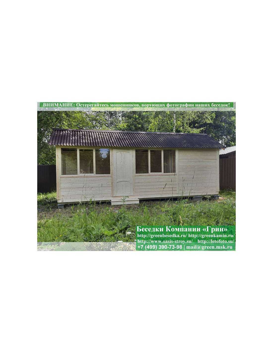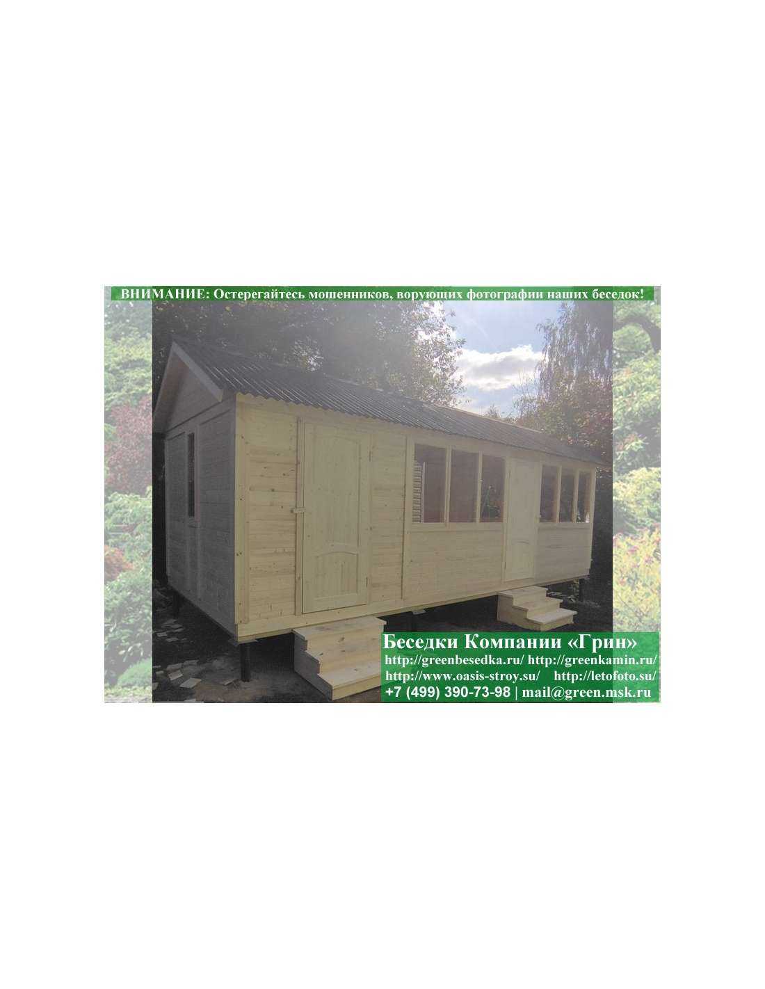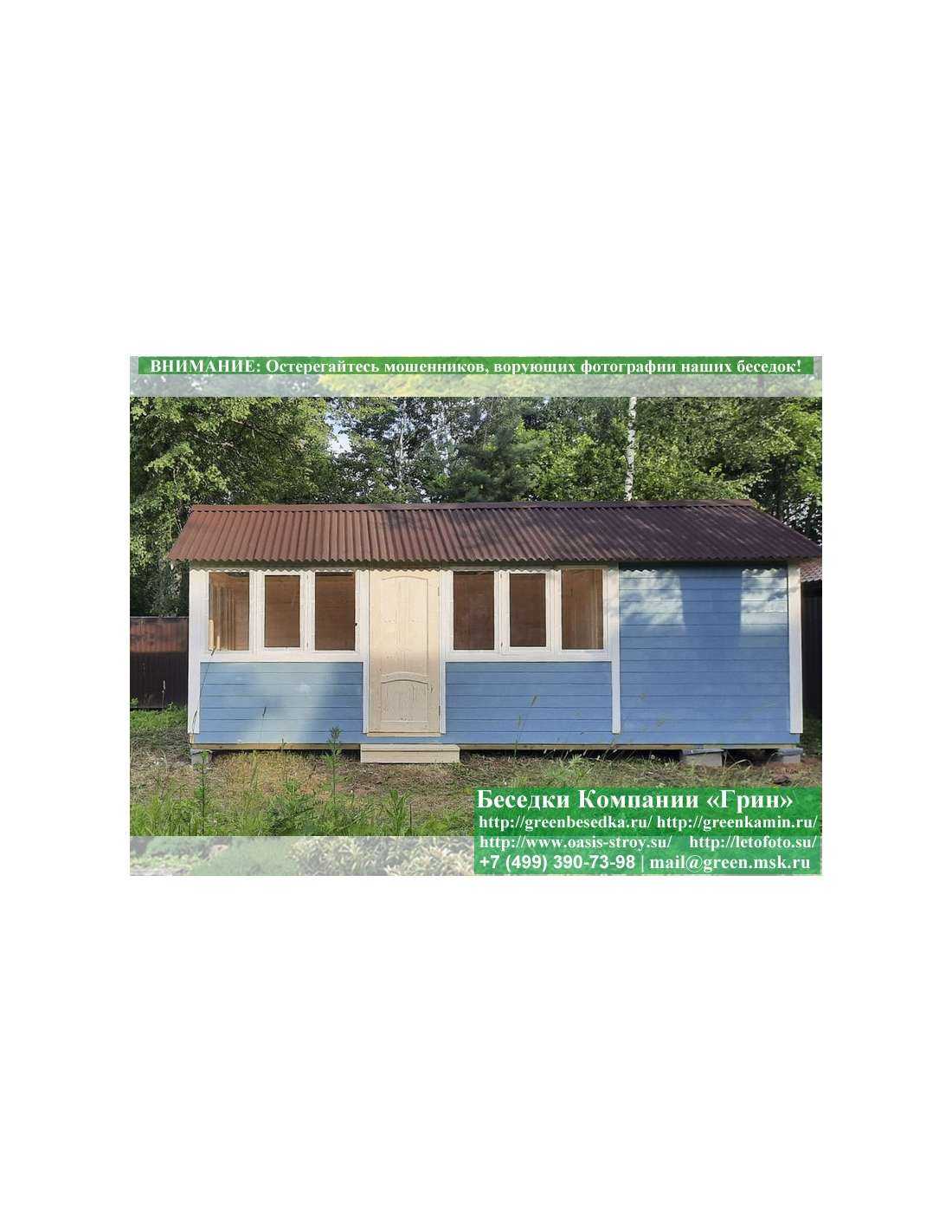 В стандартной поставке в виде кровли на крышу бытовок, беседок, хозблоков 3х7 метров кладется ондулин (мягкий шифер). Вы можете дополнительно заменить его на более надежную металлочерепицу. Цена 35000 руб.