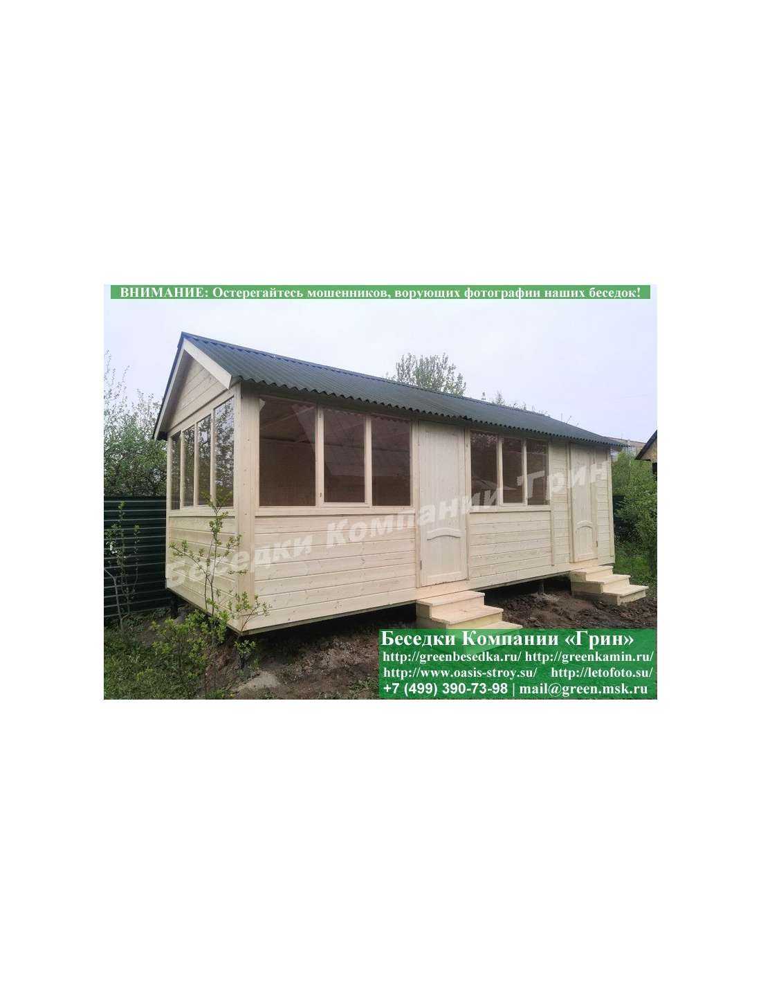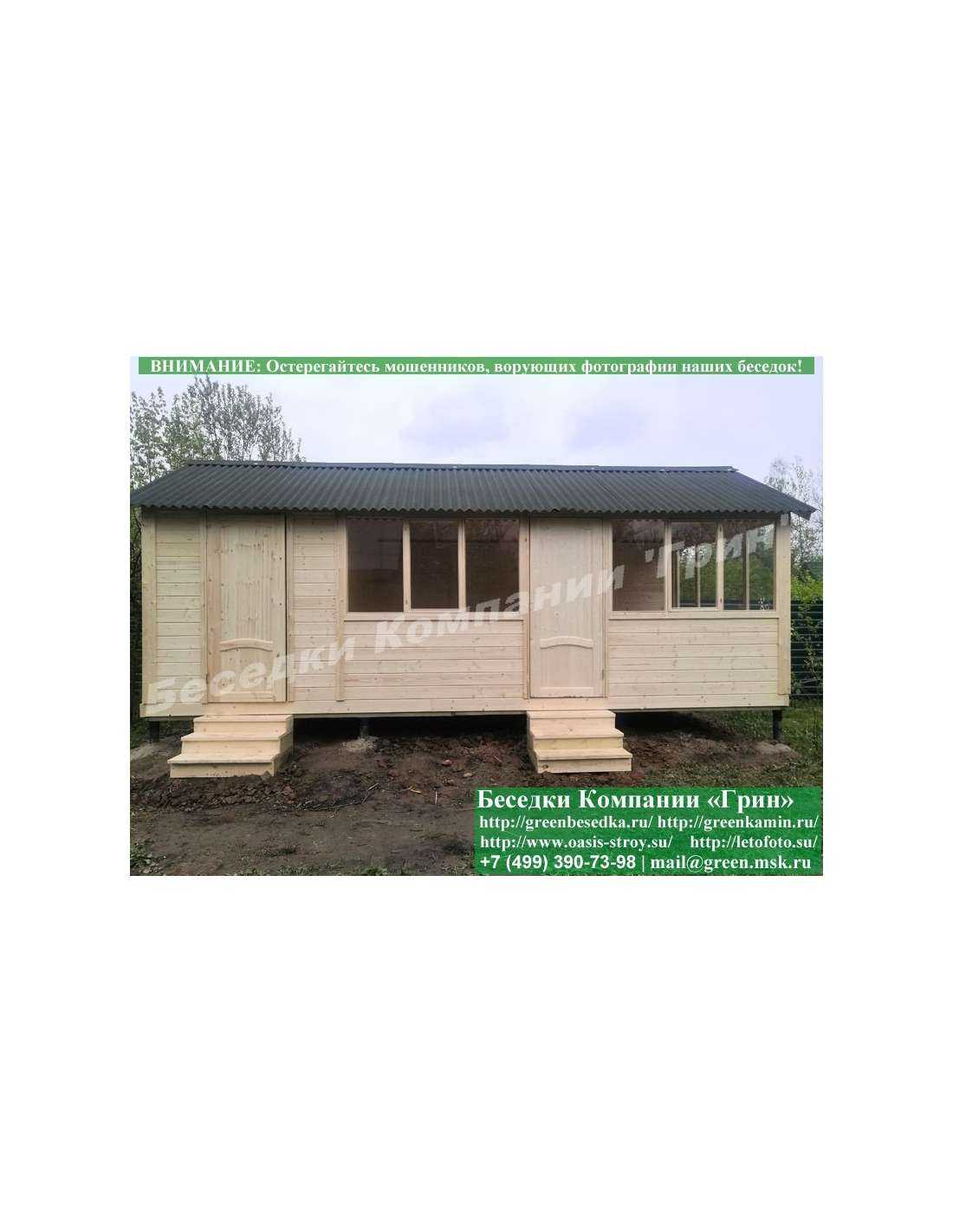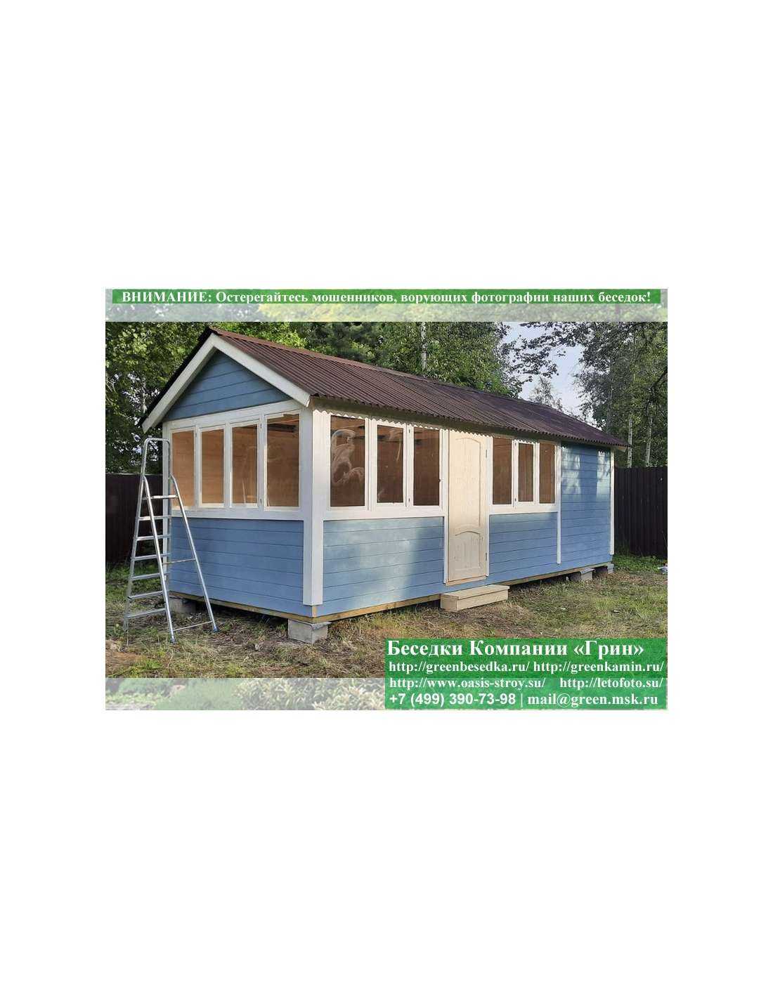 В стандартной поставке в виде кровли на крышу бытовок, беседок, хозблоков 3х7 метров кладется ондулин (мягкий шифер). Вы можете дополнительно заменить его на более надежную металлочерепицу. Цена 35000 руб.