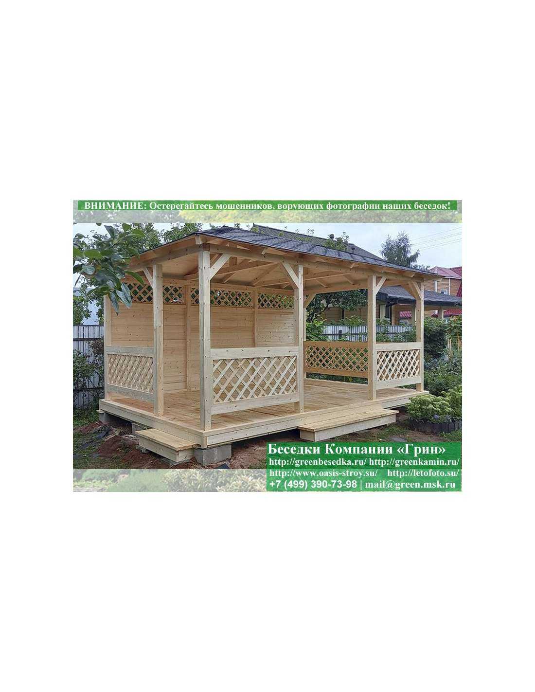 Красивая летняя деревянная беседка для дачи, загородного дома 3х5 метров. Фото и цены. В интернет-магазине "Рубеседки" вы можете купить элегантную летнюю беседку из дерева для дачи, сада 3х5 недорого под ключ в Ярославле и Ярославской области. Изготовление и строительство интересных летних деревянных беседок по готовым проектам размерами 3х5 метров возможно так же в Москве, Московской, Калужской, Тверской, Владимирской, Рязанской, Тульской, Орловской, Брянской, Костромской, Новгородской, Липецкой, Ленинградской и некоторых других областях.