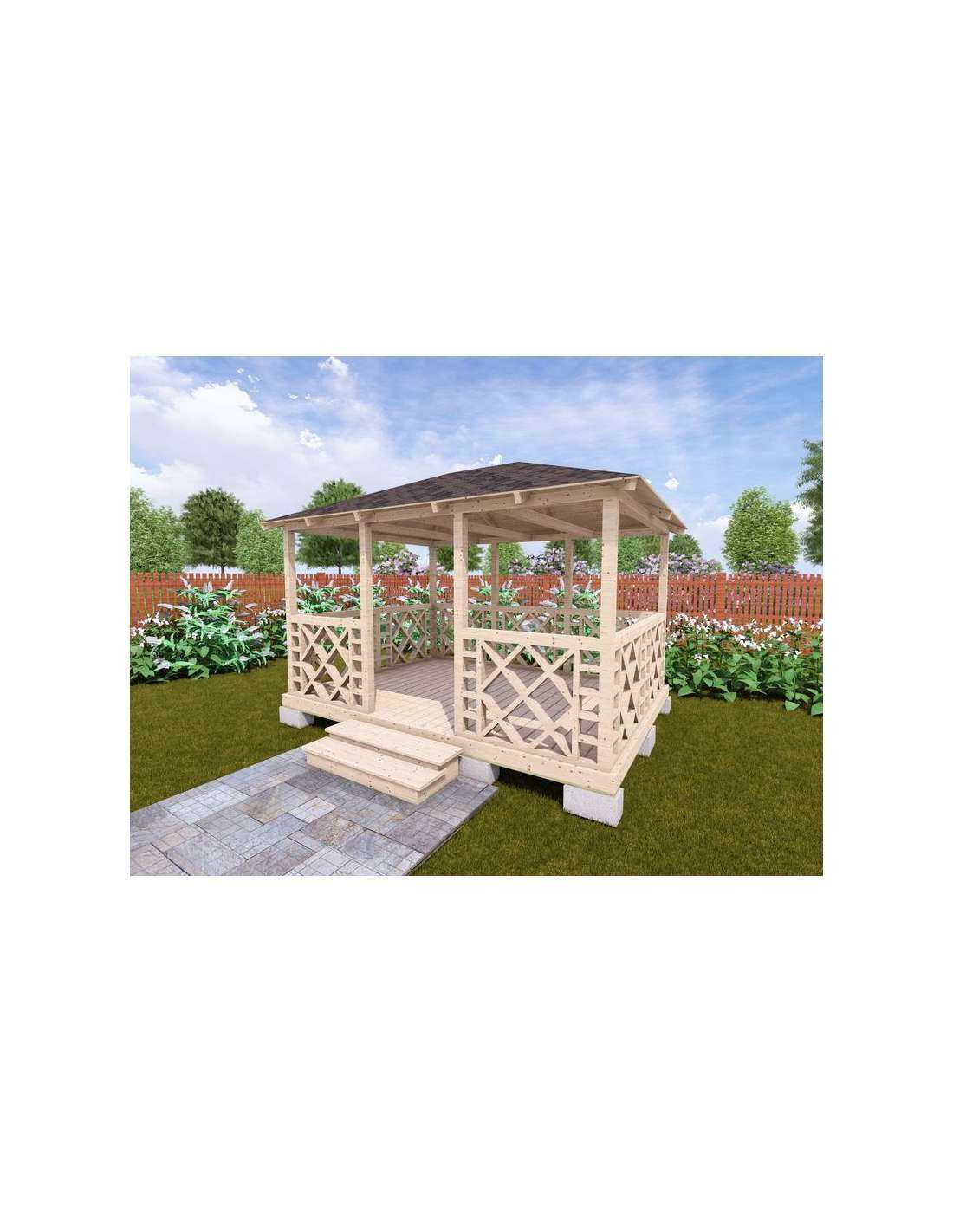 При установке беседки, бытовки, хозблока на сваи ставится двойная или тройная ступень. Зависит от перепада участка и высоты свай. Цена: 3000-4500 руб.