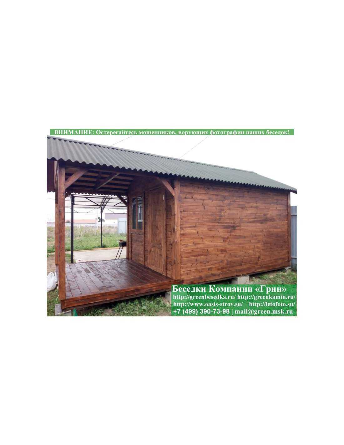 В стандартной поставке в виде кровли на крышу бытовок, беседок, хозблоков 3х6 метров кладется ондулин (мягкий шифер). Вы можете дополнительно заменить его на более надежную металлочерепицу. Цена 31000 руб.
