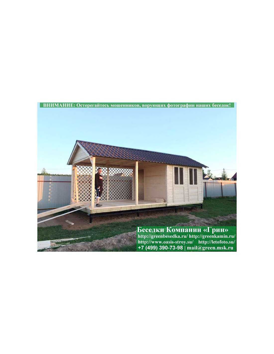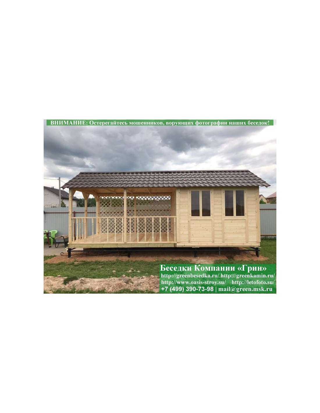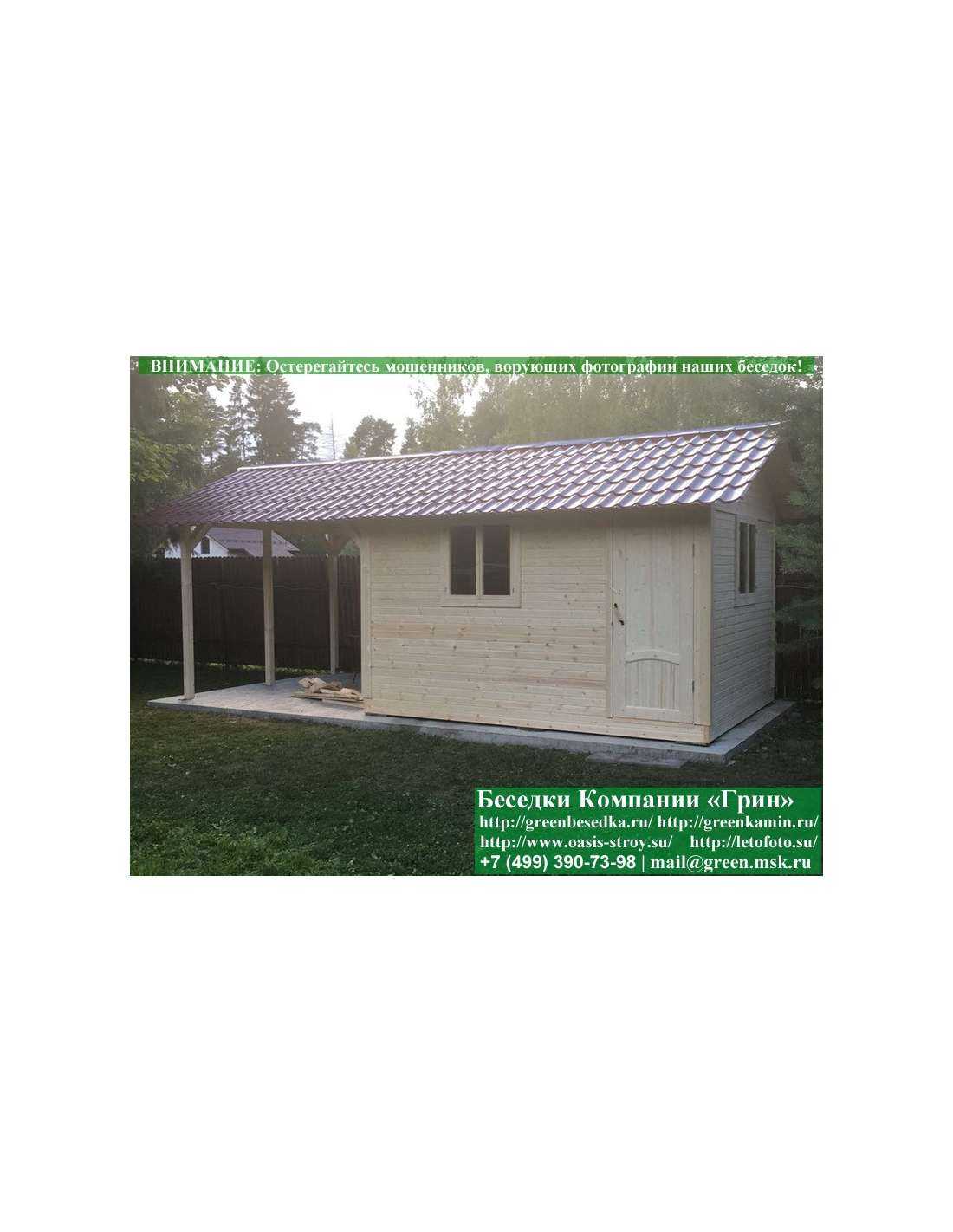 В стандартной поставке в виде кровли на крышу бытовок, беседок, хозблоков 3х7 метров кладется ондулин (мягкий шифер). Вы можете дополнительно заменить его на более надежную металлочерепицу. Цена 35000 руб.