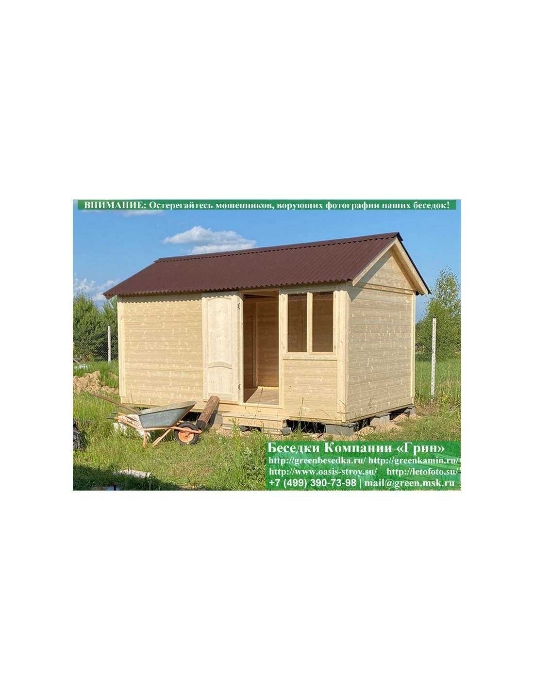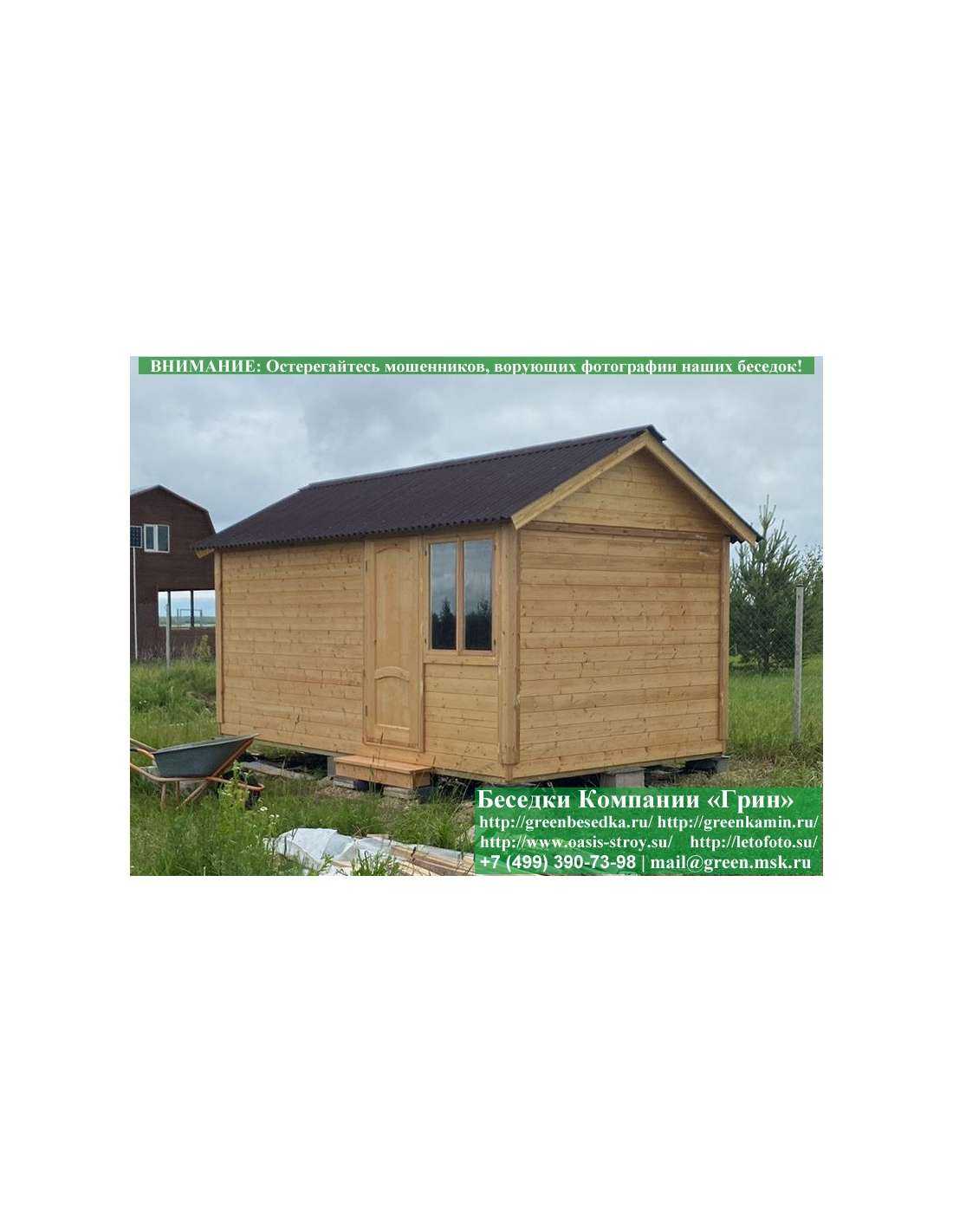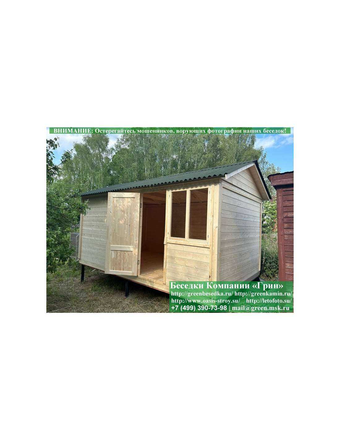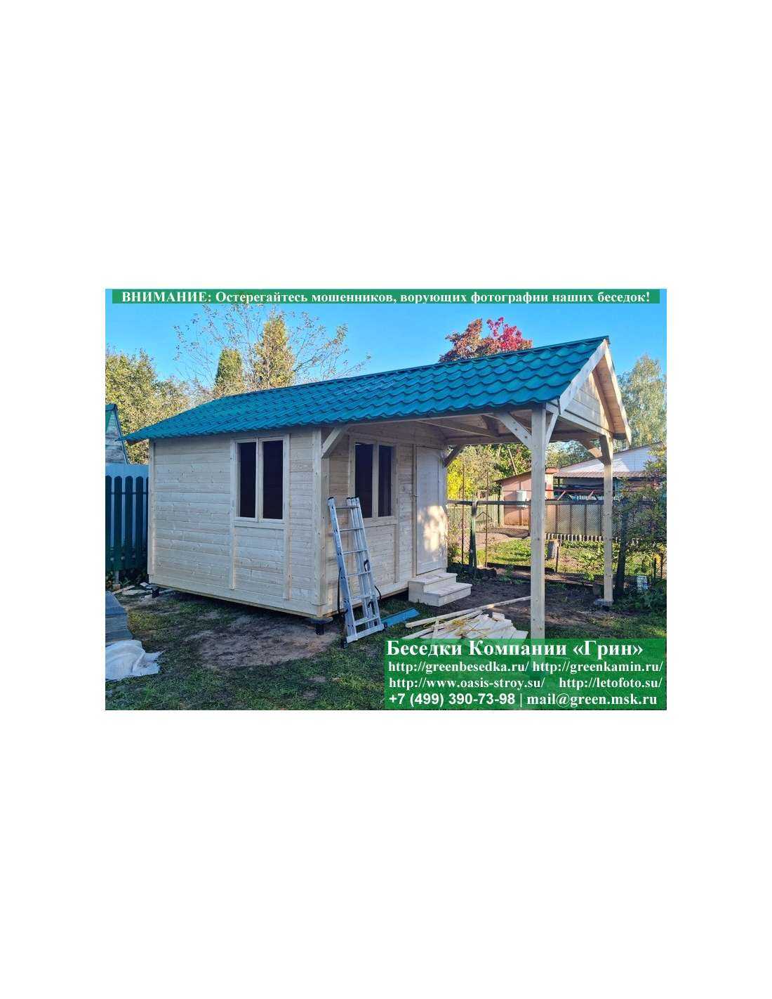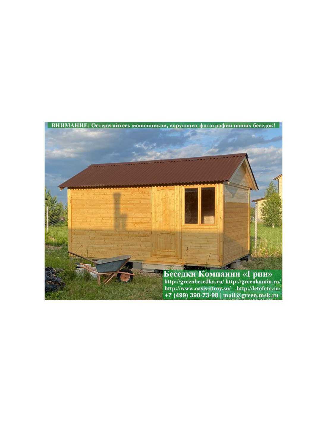В стандартной поставке в виде кровли на крышу бытовок, беседок, хозблоков 3х5 метров кладется ондулин (мягкий шифер). Вы можете дополнительно заменить его на более надежную металлочерепицу. Цена 26000 руб.