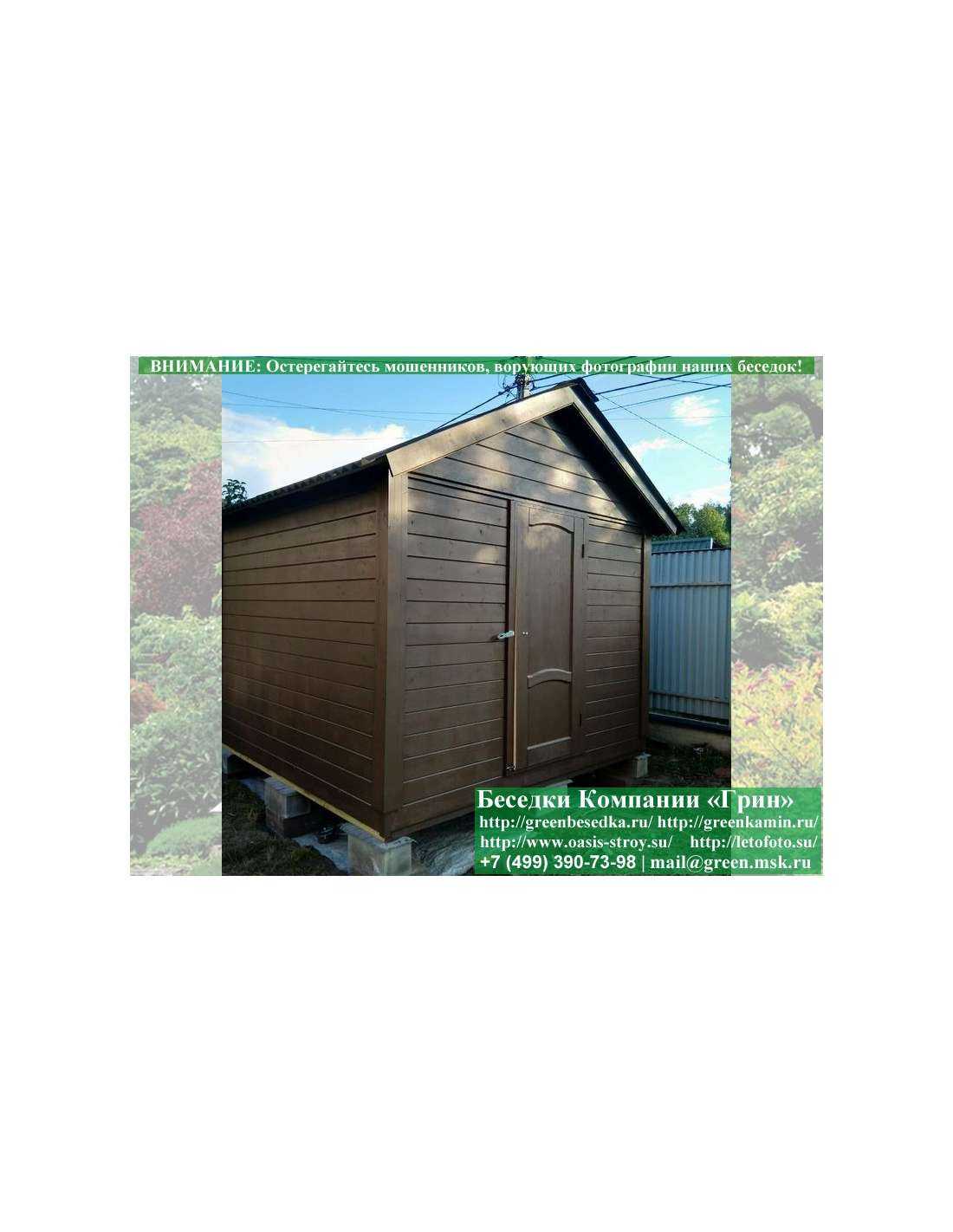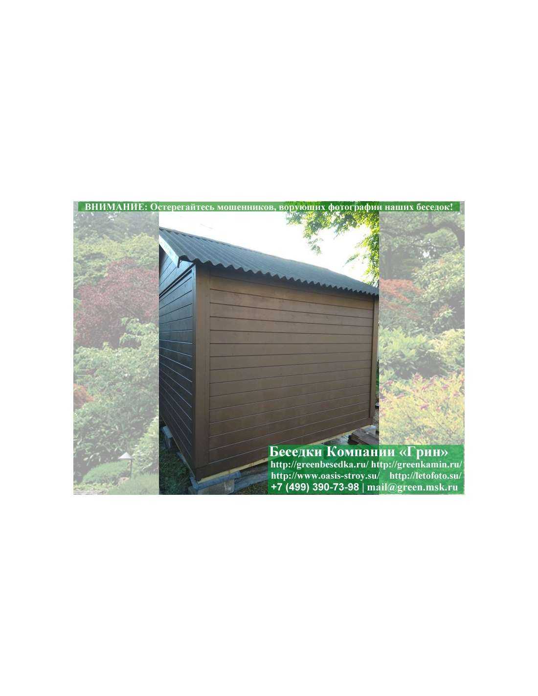 В стандартной поставке основание под кровлю беседок, бытовок, хозблоков 3х3 метра идет с обрешеткой через 10 см. Вы можете 'зашить' основание под кровлю глухой имитацией бруса.