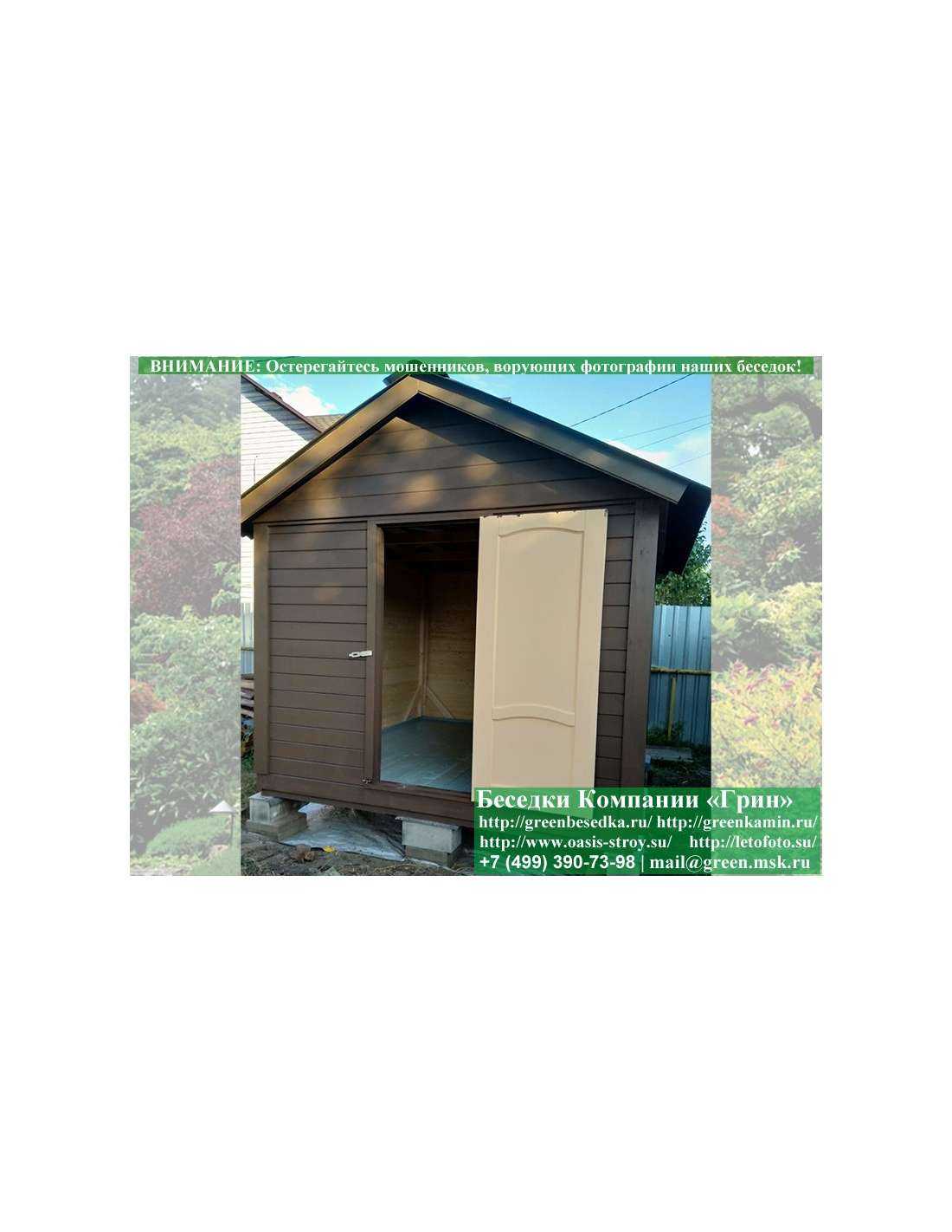 В стандартной поставке в виде кровли на крышу бытовок, беседок, хозблоков 3х3 метра кладется ондулин (мягкий шифер). Вы можете дополнительно заменить его на более надежную металлочерепицу. Цена 17000 руб.