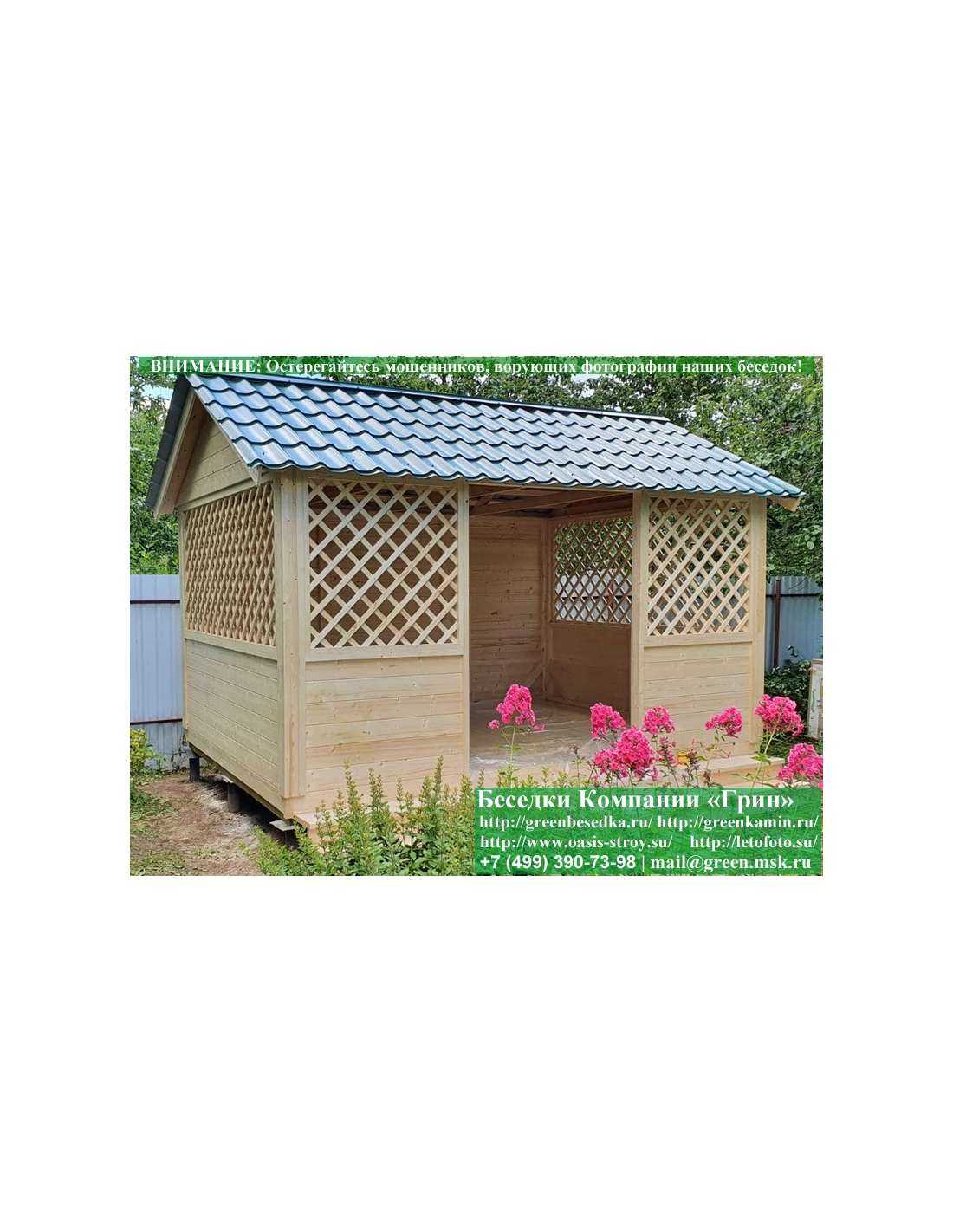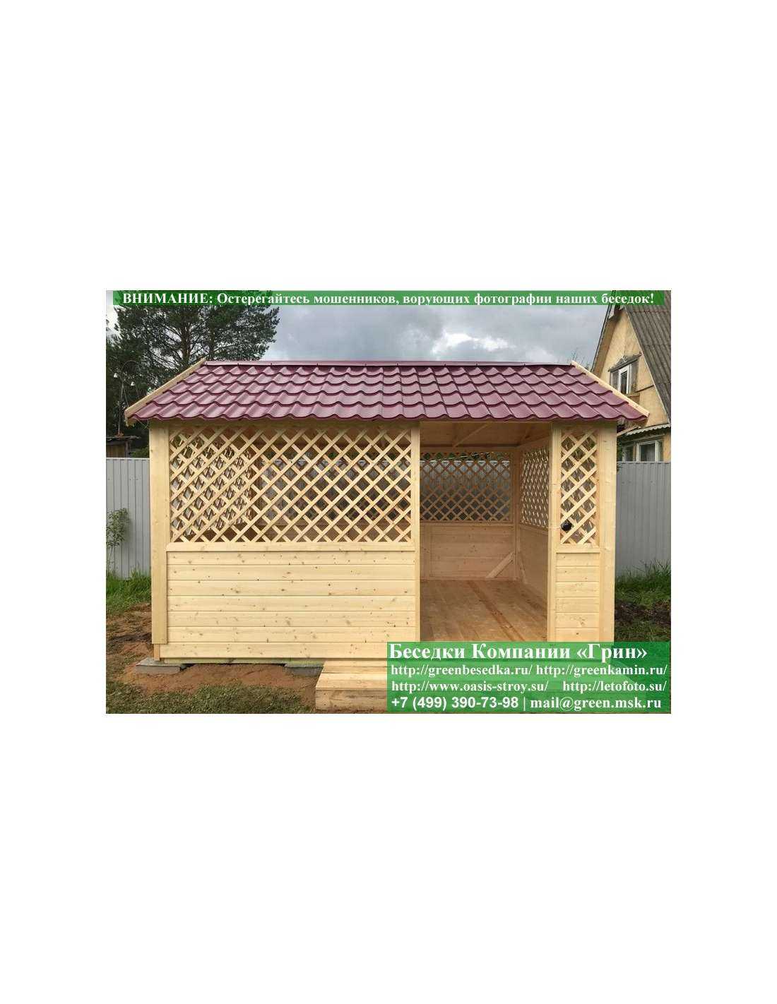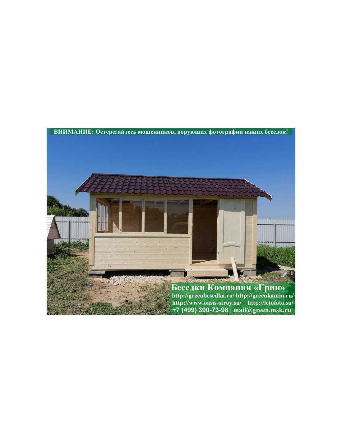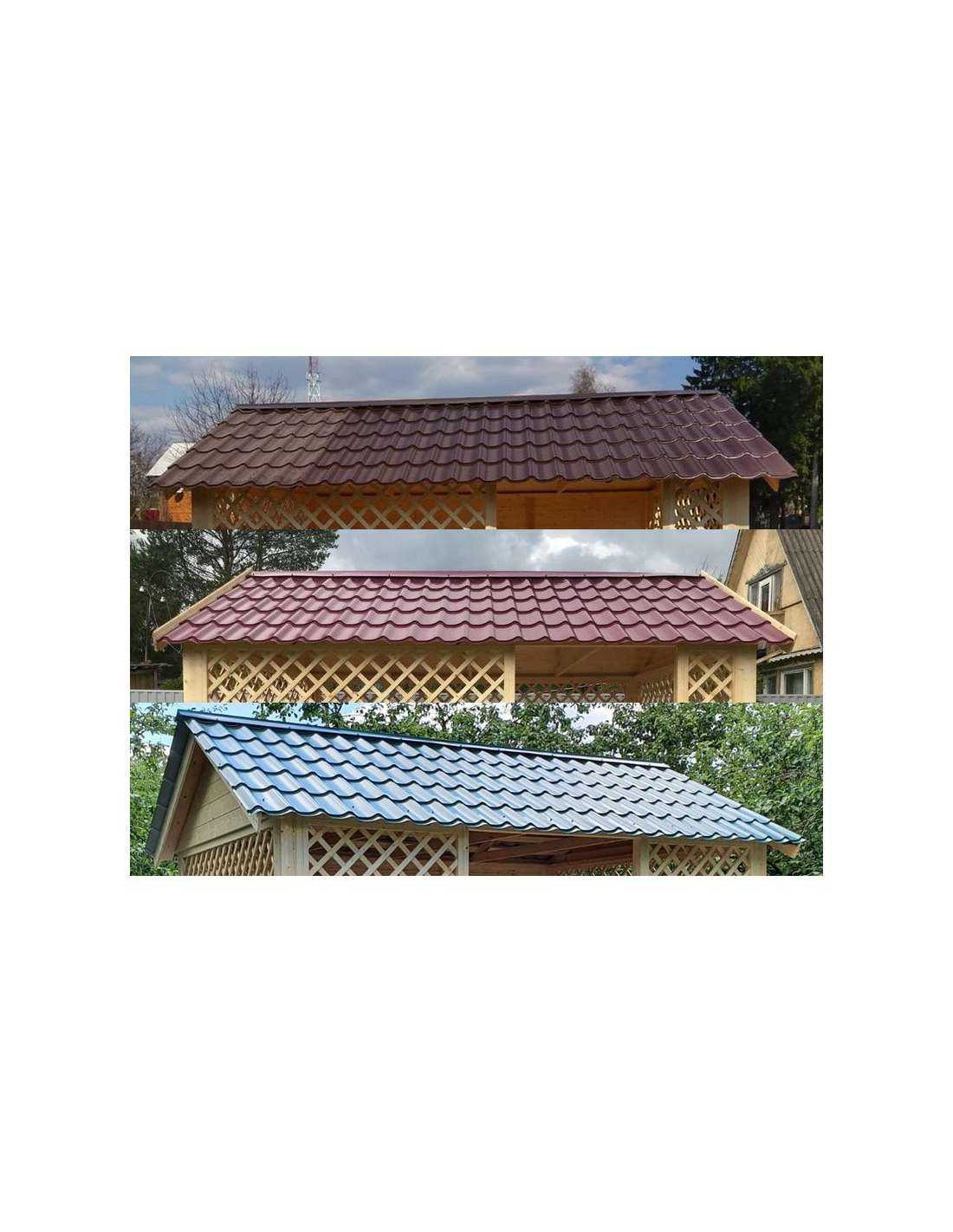 В стандартной поставке в виде кровли на крышу бытовок, беседок, хозблоков 3х5 метров кладется ондулин (мягкий шифер). Вы можете дополнительно заменить его на более надежную металлочерепицу. Цена 26000 руб.
