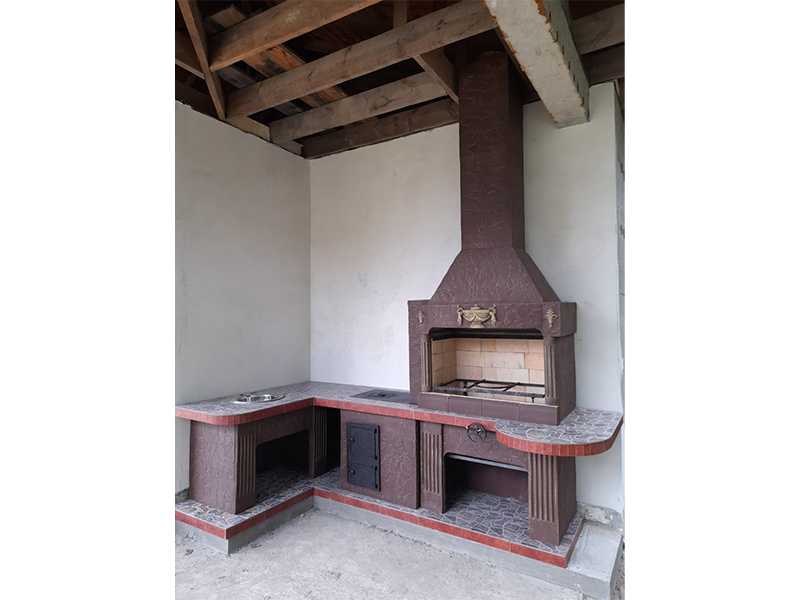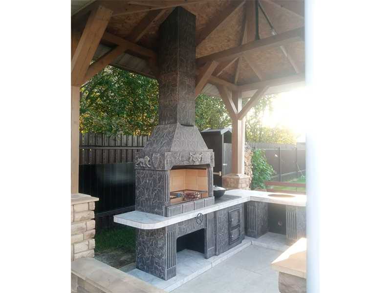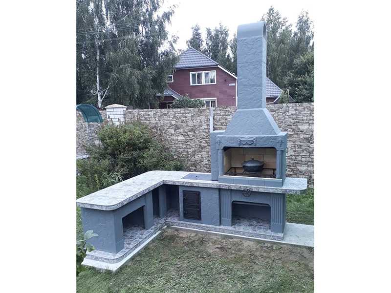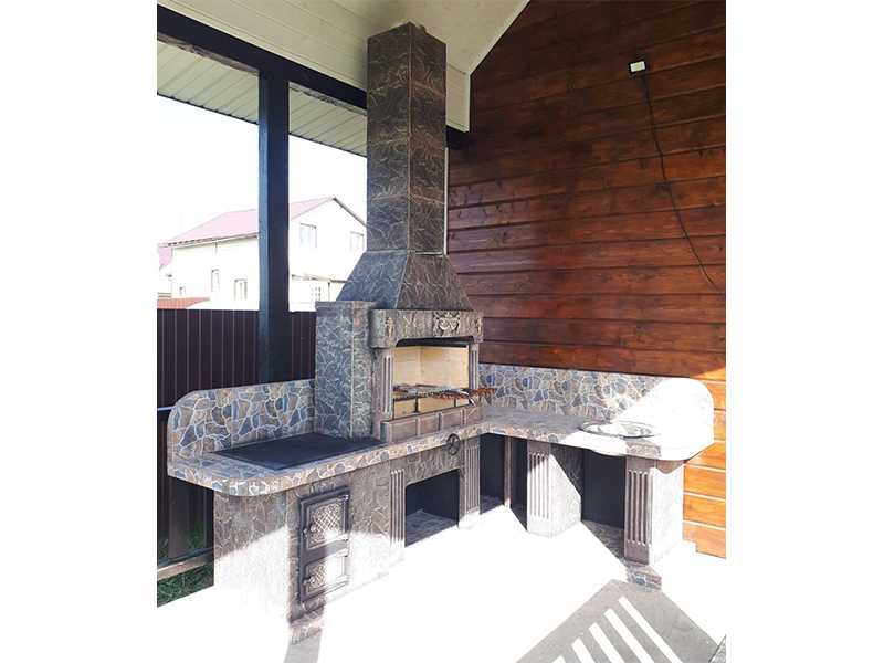 Рабочие поверхности столешницы, как и места для хранения топлива, отделаны качественной плиткой. Вы можете легко отмыть печь-барбекю для улицы или беседки, если в этом возникнет необходимость. Другие поверхности выкрашены фасадной краской — надежной, качественной и устойчивой ко всем негативным факторам.