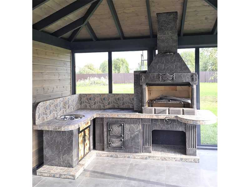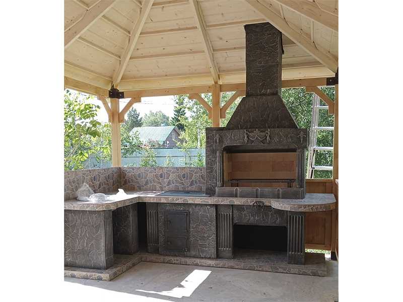 Угловая печь-барбекю для беседки, дачи, летней кухни от производителя. Мы более десяти лет работаем в этом направлении, поэтому создаем по-настоящему долговечные и удобные в использовании конструкции. В качестве основы для печей выбирается армированный бетон, облицовочные материалы многократно тестируются.