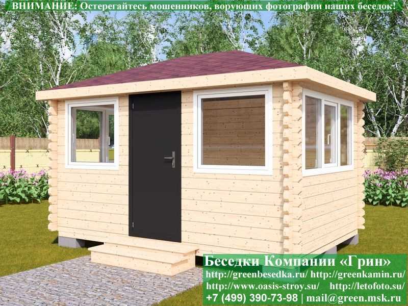 В стандартной поставке в виде кровли на крышу бытовок, беседок, хозблоков 3х4 метров кладется ондулин (мягкий шифер). Вы можете дополнительно заменить его на более надежную металлочерепицу. Цена 22000 руб.