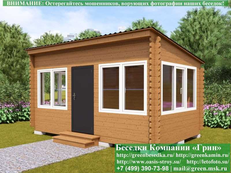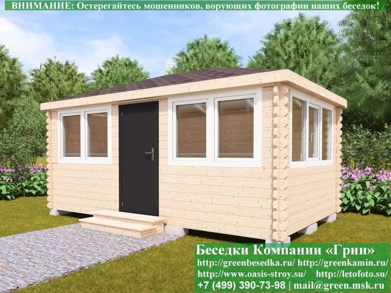 В стандартной поставке в виде кровли на крышу бытовок, беседок, хозблоков 3х5 метров кладется ондулин (мягкий шифер). Вы можете дополнительно заменить его на более надежную металлочерепицу. Цена 26000 руб.