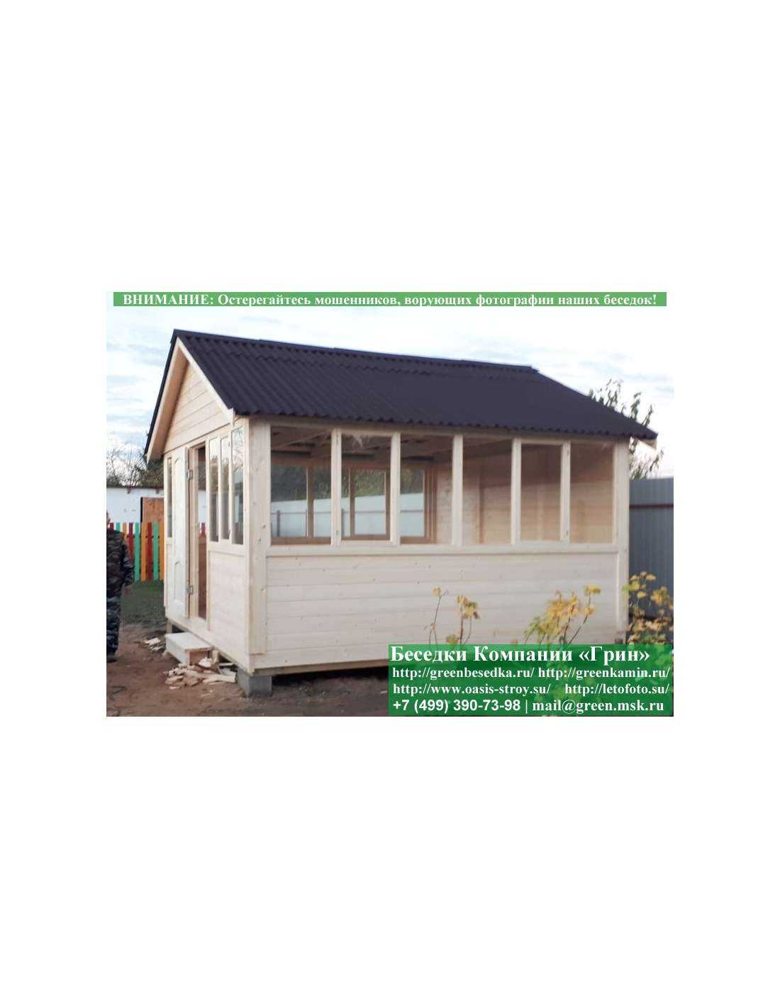 В стандартной поставке в виде кровли на крышу бытовок, беседок, хозблоков 4х4 метра кладется ондулин (мягкий шифер). Вы можете дополнительно заменить его на более надежную металлочерепицу. Цена 27000 руб.