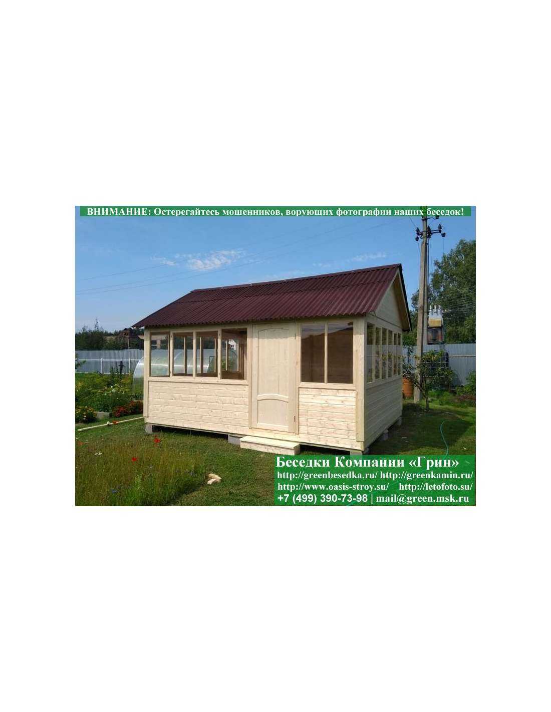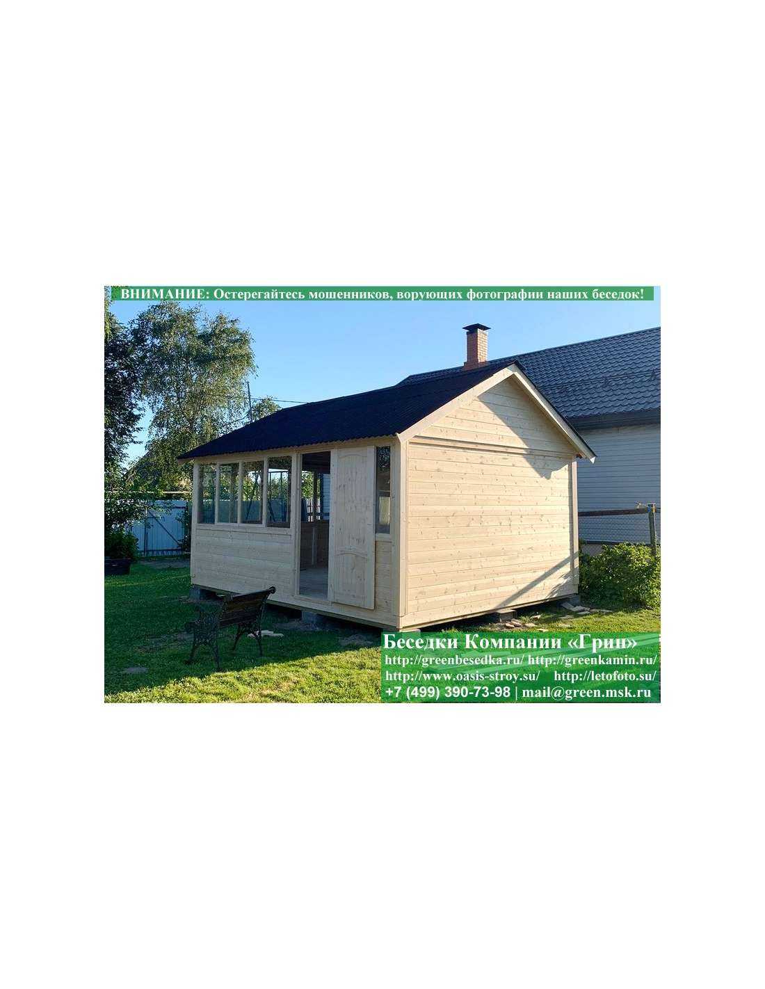 В стандартной поставке в виде кровли на крышу бытовок, беседок, хозблоков 4х5 метров кладется ондулин (мягкий шифер). Вы можете дополнительно заменить его на более надежную металлочерепицу. Цена 35000 руб.