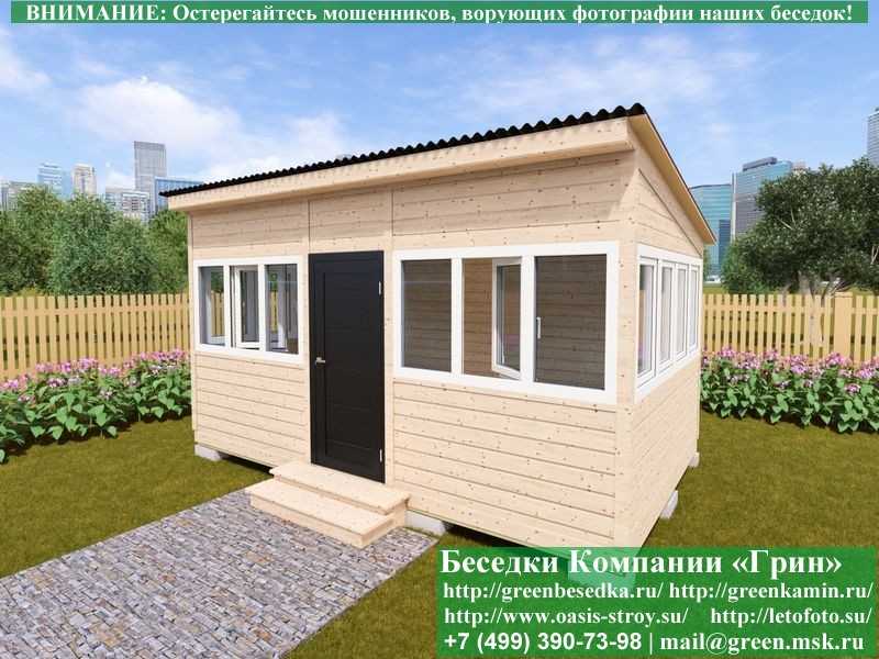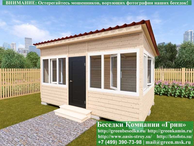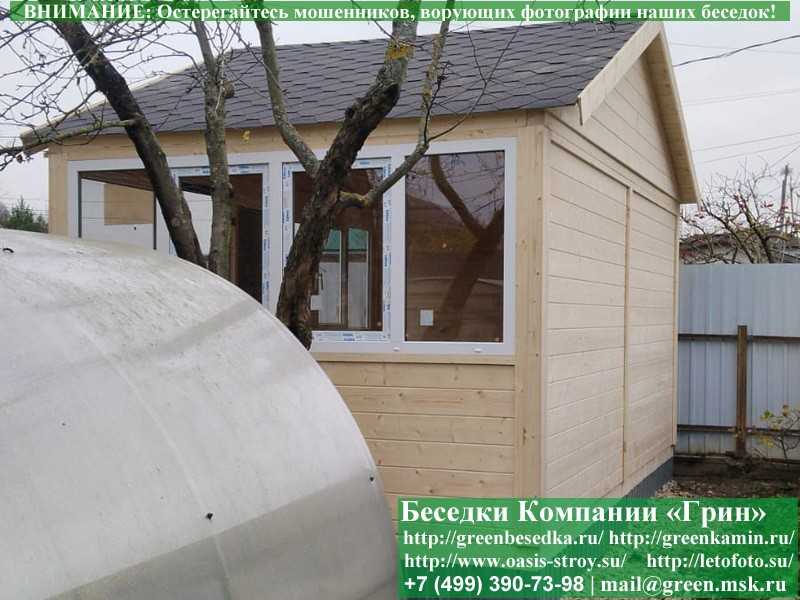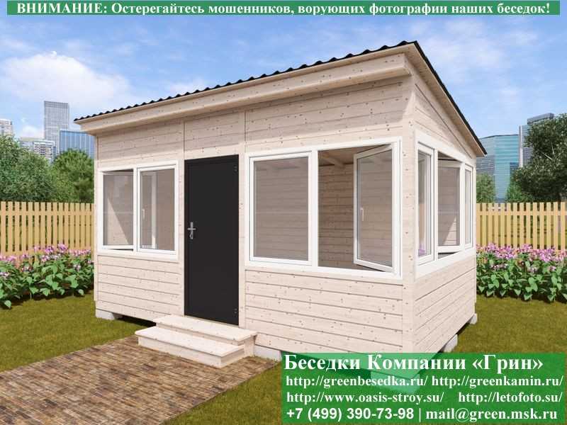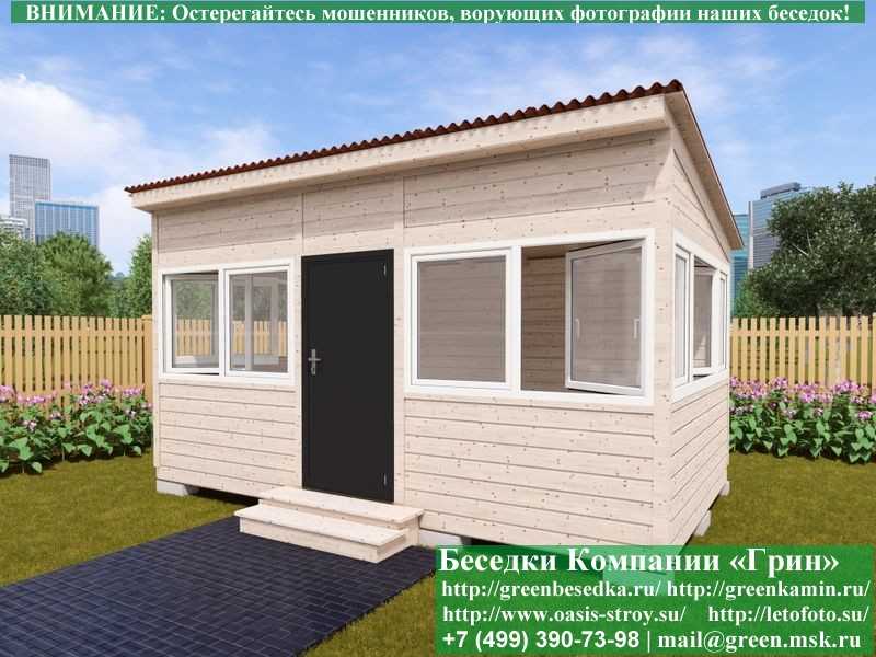 В стандартной поставке в виде кровли на крышу бытовок, беседок, хозблоков 3х5 метров кладется ондулин (мягкий шифер). Вы можете дополнительно заменить его на более надежную металлочерепицу. Цена 26000 руб.