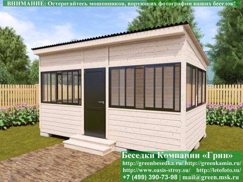 В стандартной поставке в виде кровли на крышу бытовок, беседок, хозблоков 3х5 метров кладется ондулин (мягкий шифер). Вы можете дополнительно заменить его на более надежную металлочерепицу. Цена 26000 руб.